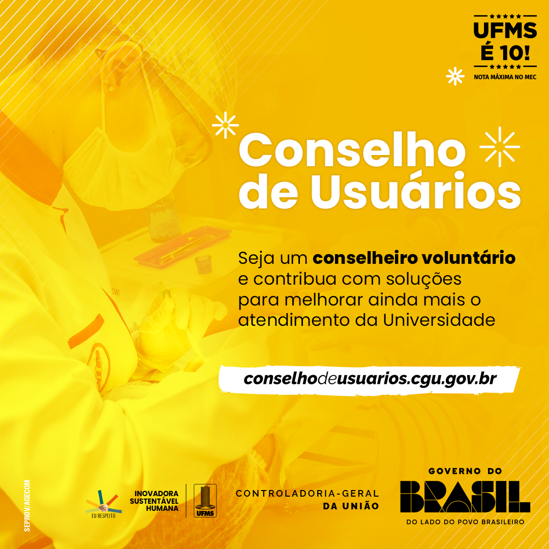 Estudantes, servidores e a comunidade externa podem se cadastrar para participação voluntária no Conselho de Usuários da UFMS. A ferramenta participativa, prevista na Lei Nº 13.460, de 2017, permite a avaliação dos serviços prestados pela Universidade, sugestões de melhorias e exposição de ideias para gestores públicos.