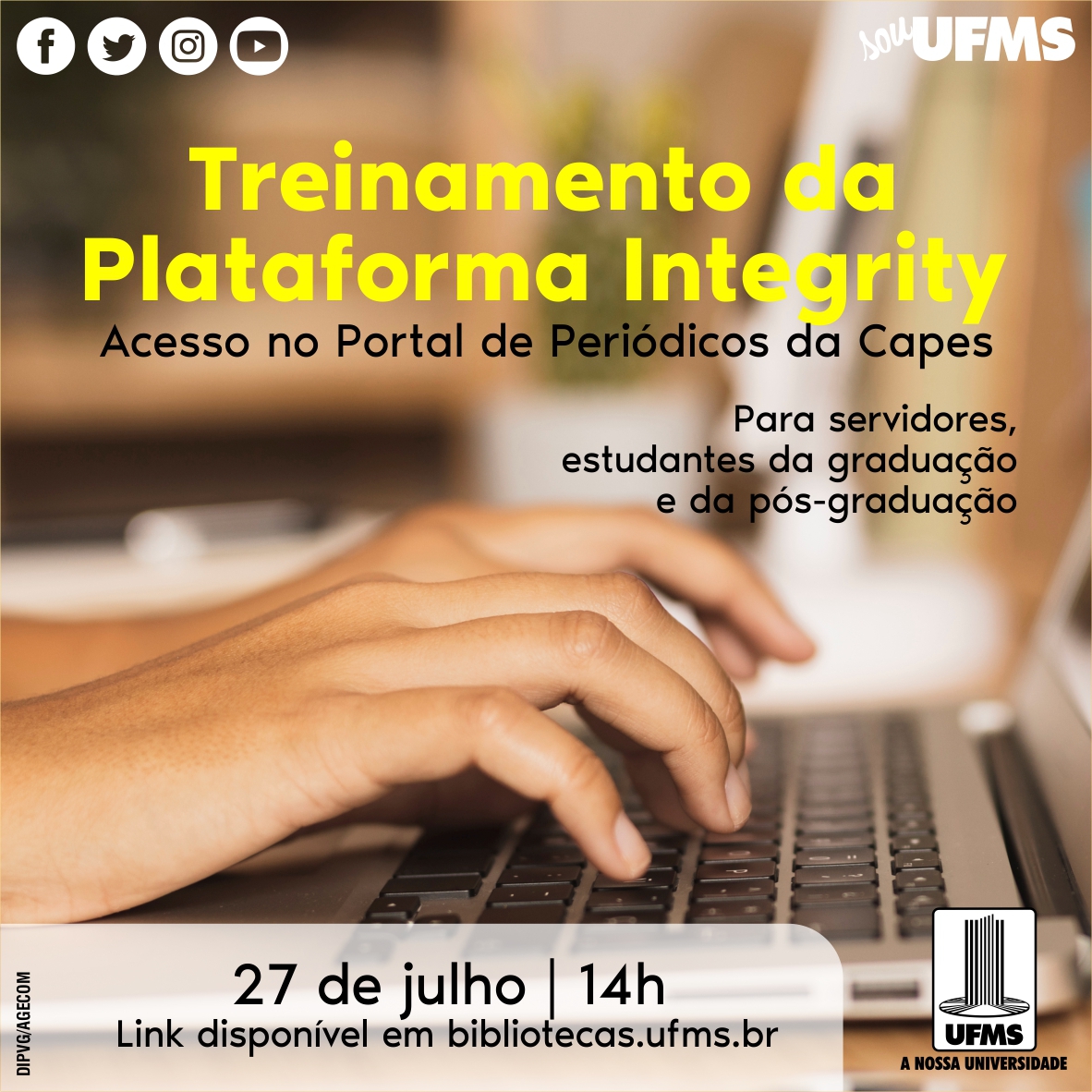 A ação será conduzida pela Clarivate Analytics e é aberta para toda a comunidade acadêmica. O link está disponível na página: https://bibliotecas.ufms.br/treinamento-plataforma-integrity/ e os participantes terão direito a certificado.