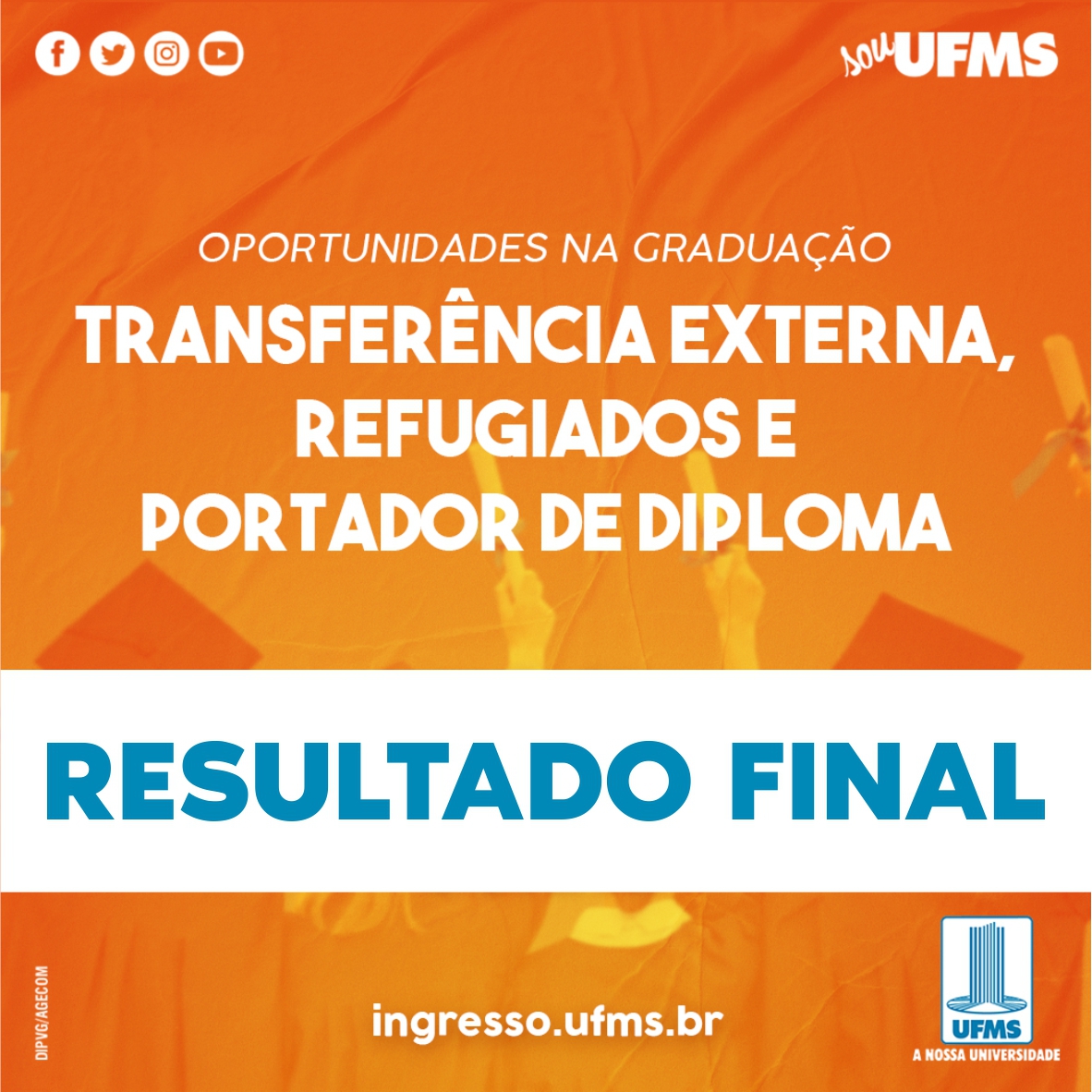 No edital do resultado final é possível conferir todas as inscrições deferidas e indeferidas. Ao todo foram abertas 337 vagas em 15 cursos de graduação distribuídos na Cidade Universitária e nos câmpus de Chapadão do Sul, Coxim, Naviraí, Nova Andradina, do Pantanal, Paranaíba, Ponta Porã e Três Lagoas.