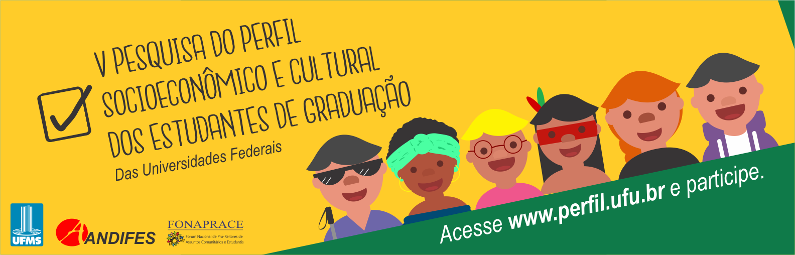 Neste semestre todos os alunos da UFMS devem responder ao Perfil Socioeconômico dos Estudantes das Universidades Federais (Andifes), e os ingressantes por meio de processo seletivo de 2018/1 devem, ainda, responder ao Perfil Socioeconômico da UFMS. O preenchimento dos perfis é obrigatório, mas os prazos para cada preenchimento são diferentes para cada categoria.