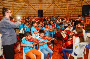 Em seguida a Orquestra Infantil Indígena da Fundação Zahran vai tocar e cantar versões sinfônicas de músicas tradicionais indígenas. A orquestra é um projeto criado em 2015 a partir de um convênio de parceria da Fundação Ueze Zahran com o Tribunal de Justiça do Estado,  e com o Comitê Intertribal Memória e Ciência Indígena. É desenvolvido na Aldeia Indígena Urbana Darci Ribeiro do Jardim Noroeste em Campo Grande, e já atendeu 250 alunos indígenas que residem na aldeia,  com a faixa etária de 7 a 16 anos de idade.