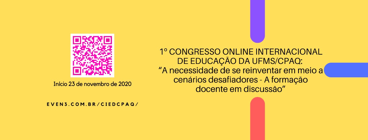 De 23 a 27 de novembro, o curso de Pedagogia do Campus de Aquidauana (CPAQ) realizará o 1º Congresso On-line Internacional de Educação da UFMS/CPAQ. O evento abordará o tema “A necessidade de se reinventar em meio a cenários desafiadores e a formação docente em discussão”, e as atividades serão transmitidas pelo Facebook e pelo Google Meet.