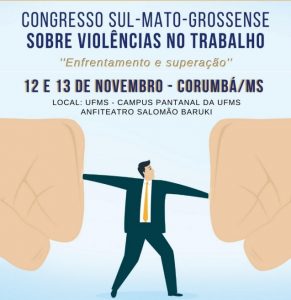 Nos dias 12 e 13 de novembro, manhã e tarde, será realizado o Congresso Sul-Mato-Grossense sobre Violências no Trabalho: Enfrentamento e Superação, no Anfiteatro Salomão Baruki, Unidade II, do Campus do Pantanal. As inscrições e submissão de trabalhos já estão disponíveis e podem ser feitas até 30 de setembro. O evento será gratuito e tem como objetivo reunir estudantes, profissionais e pesquisadores para discutir as diversas formas de violência no trabalho. Será emitido Certificado de 12 horas do Congresso, mais carga horária dos minicursos e de apresentação de trabalhos.