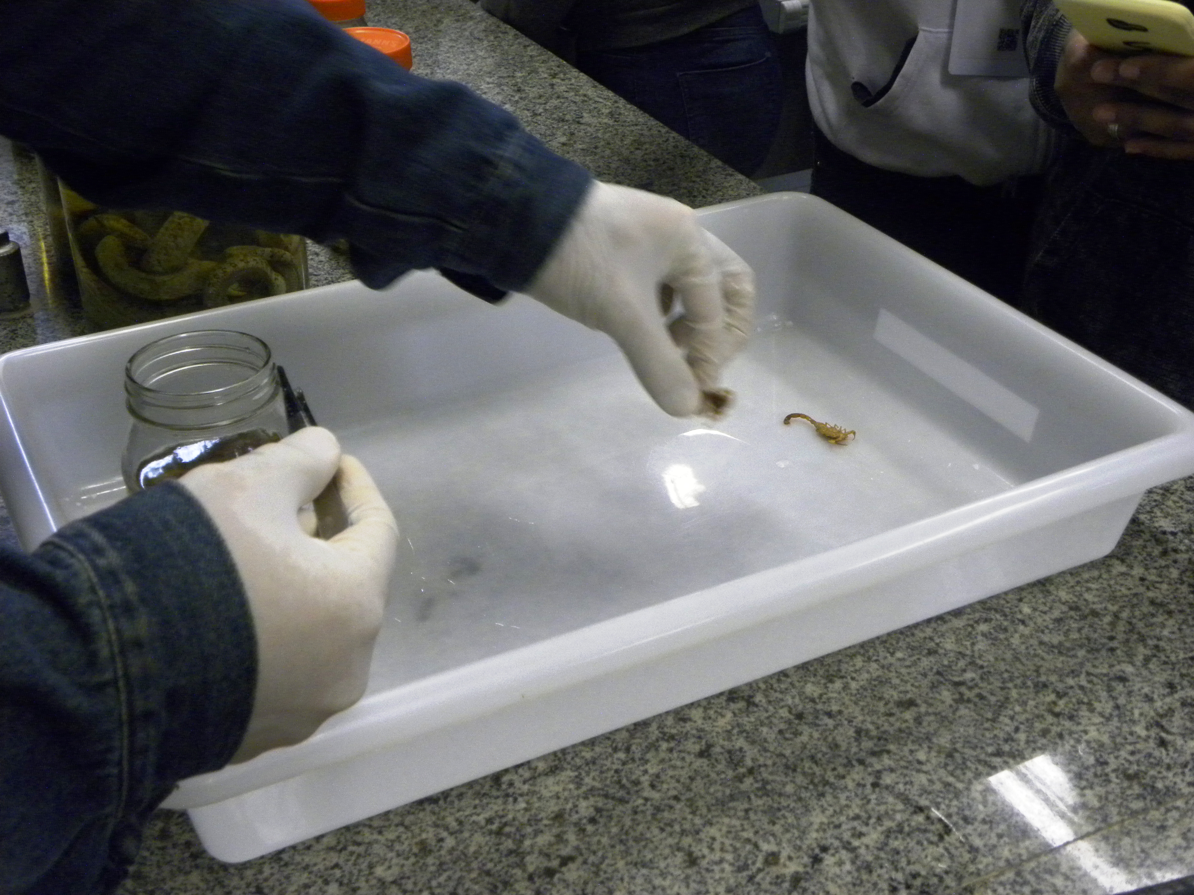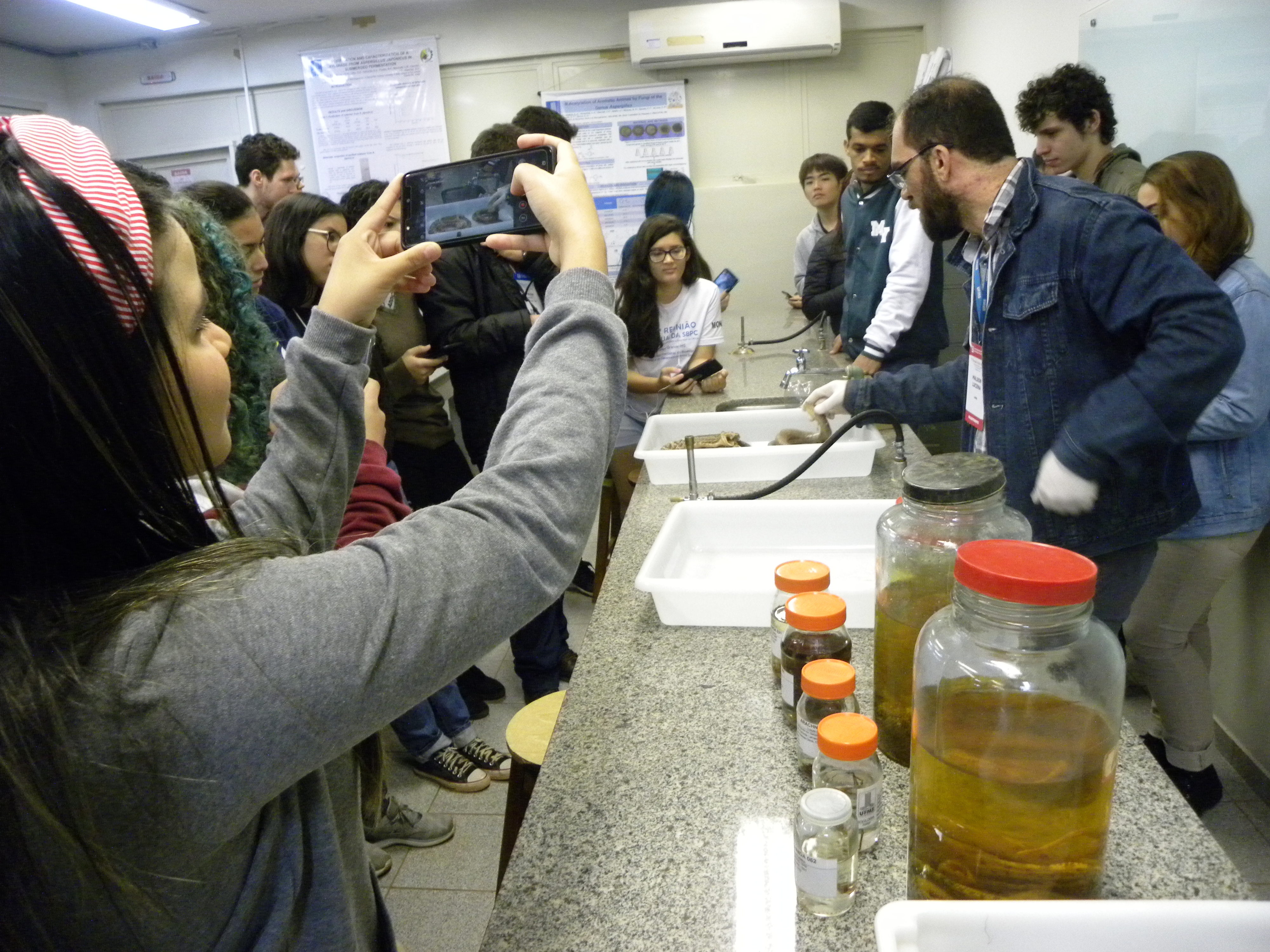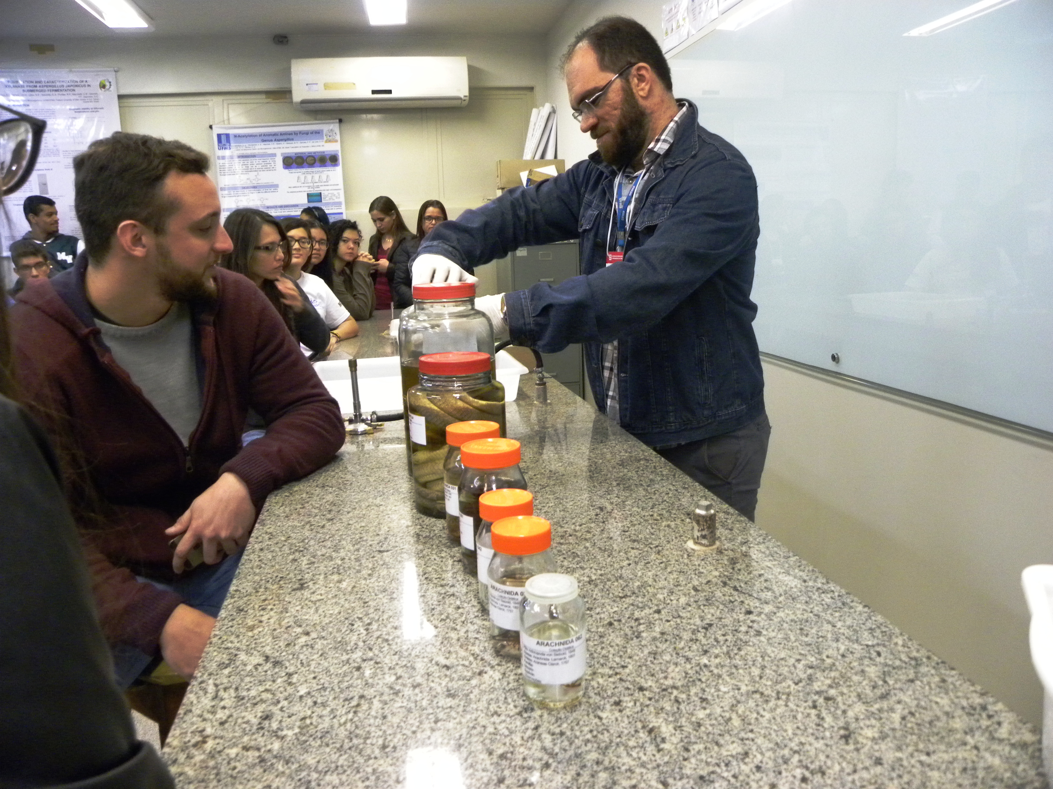 A atividade prática foi realizada no Laboratório de Bioquímica com peças do acervo didático da Coleção Zoológica da Universidade.