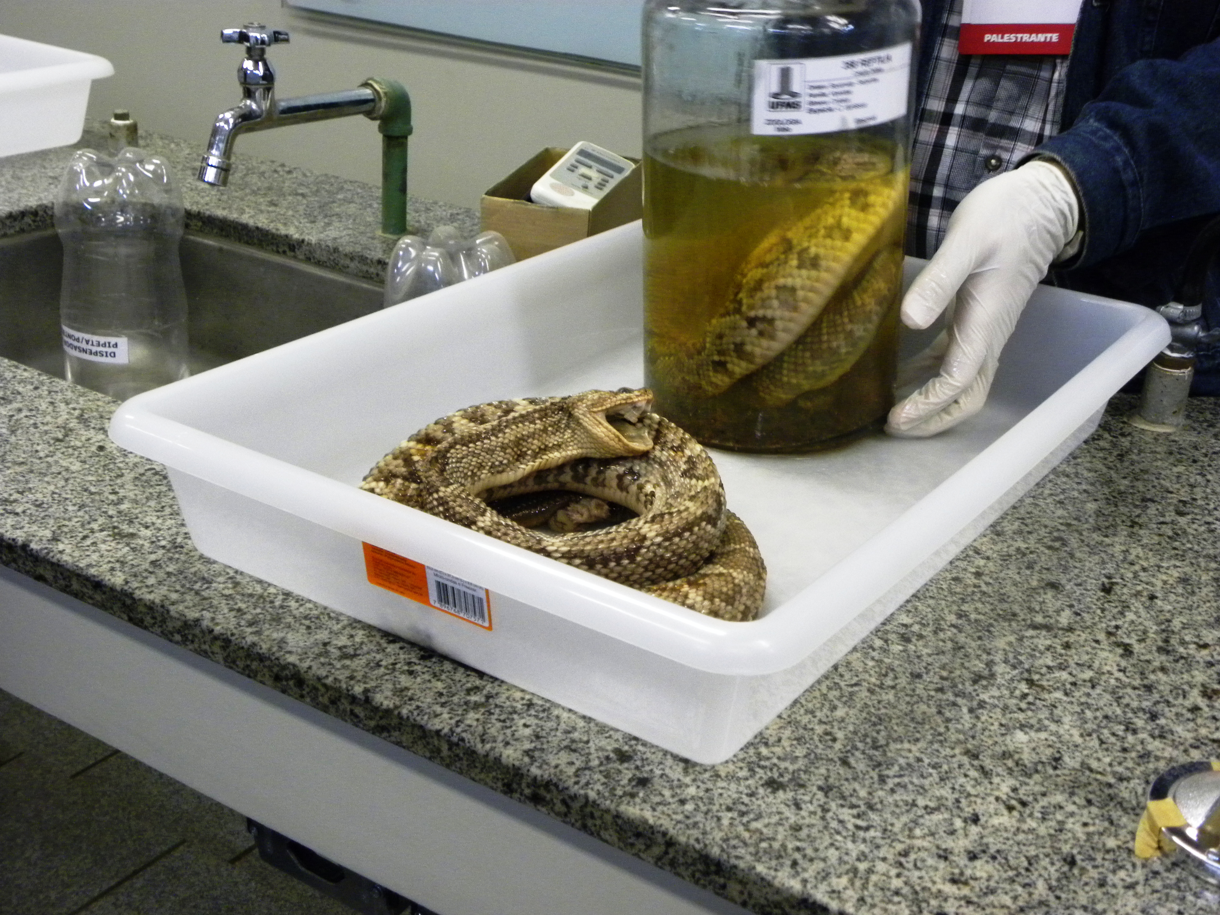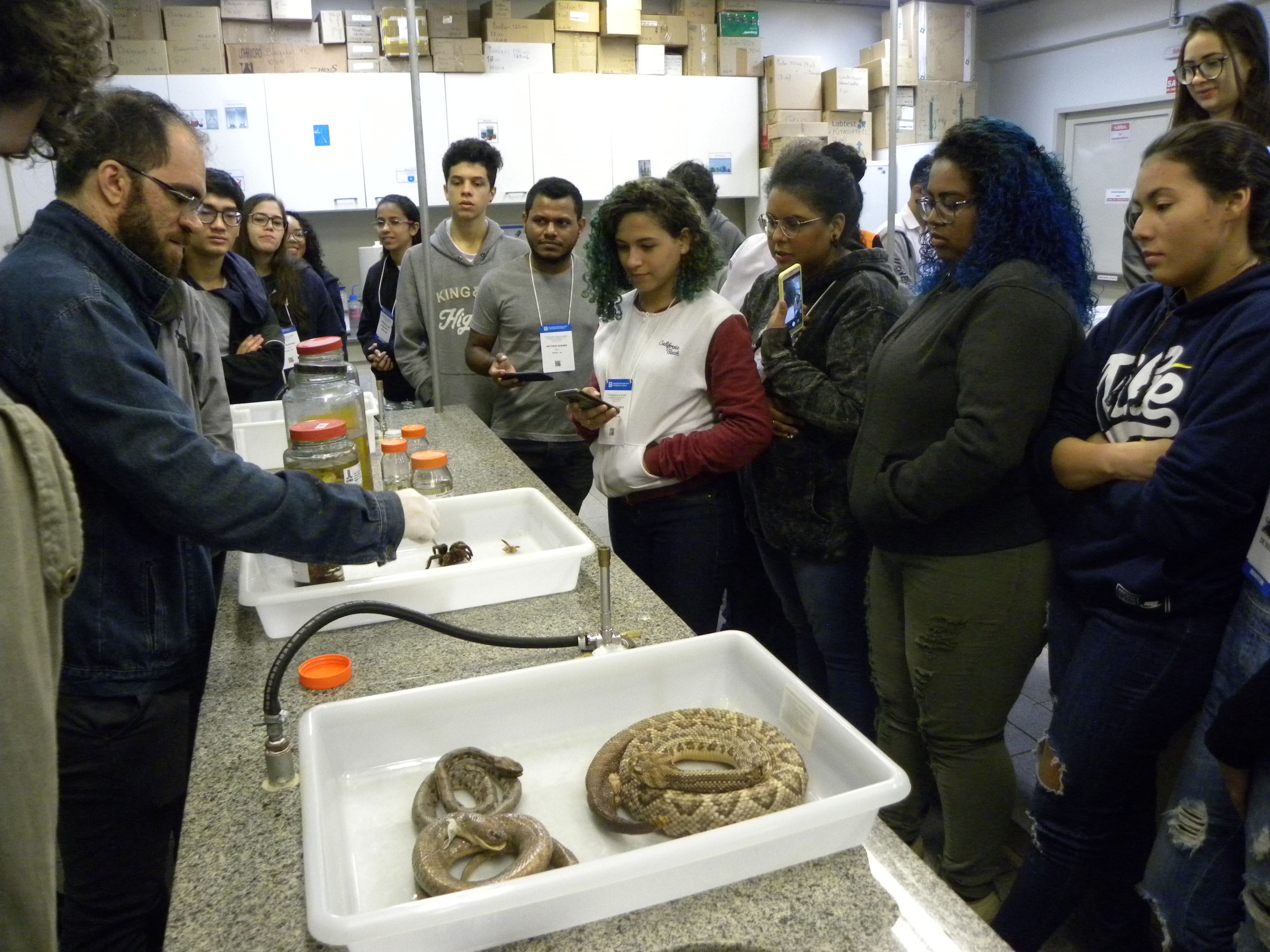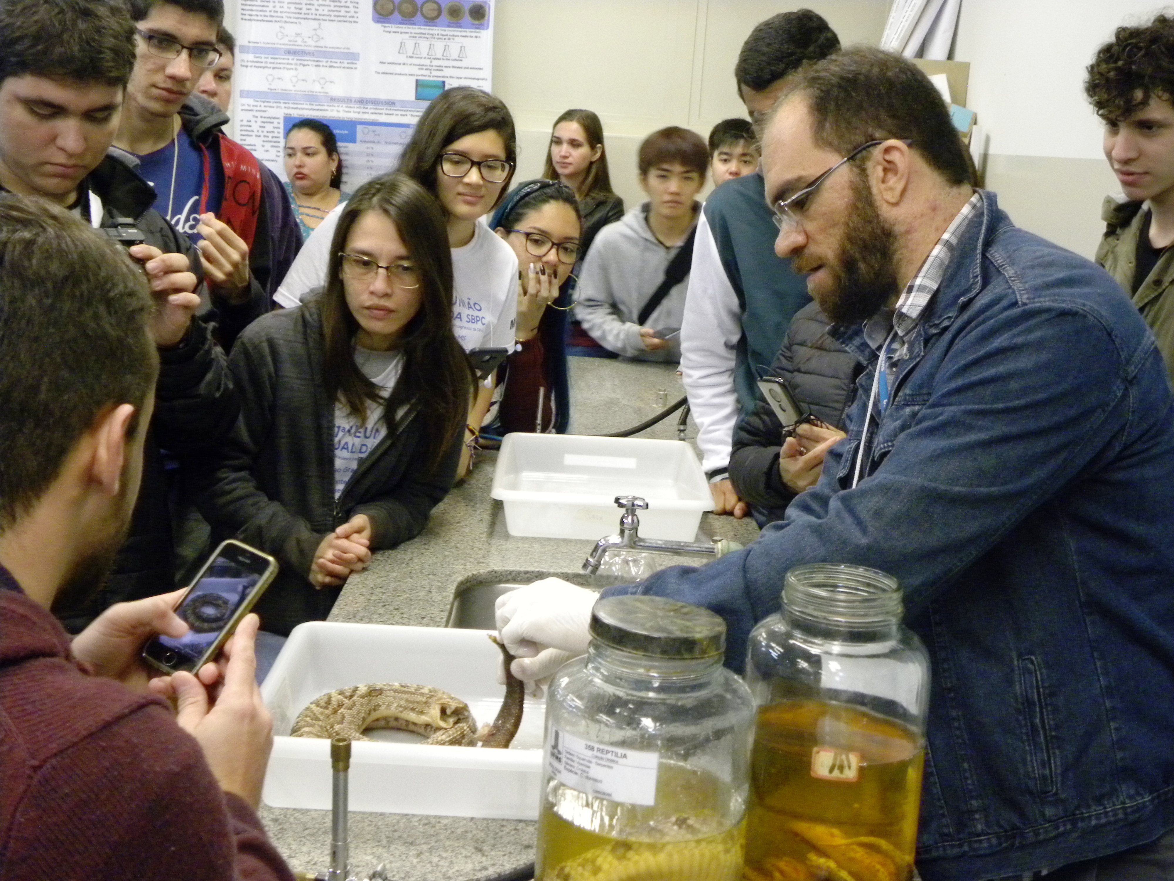 No minicurso “Animais peçonhentos, diversidade e aplicações biotecnológicas das peçonhas”, ministrado pelo professor durante a 71ª Reunião Anual da Sociedade Brasileira para o Progresso da Ciência (SBPC), os participantes puderam obter conhecimentos sobre as principais ameaças à população e ver de perto alguns dos animais.