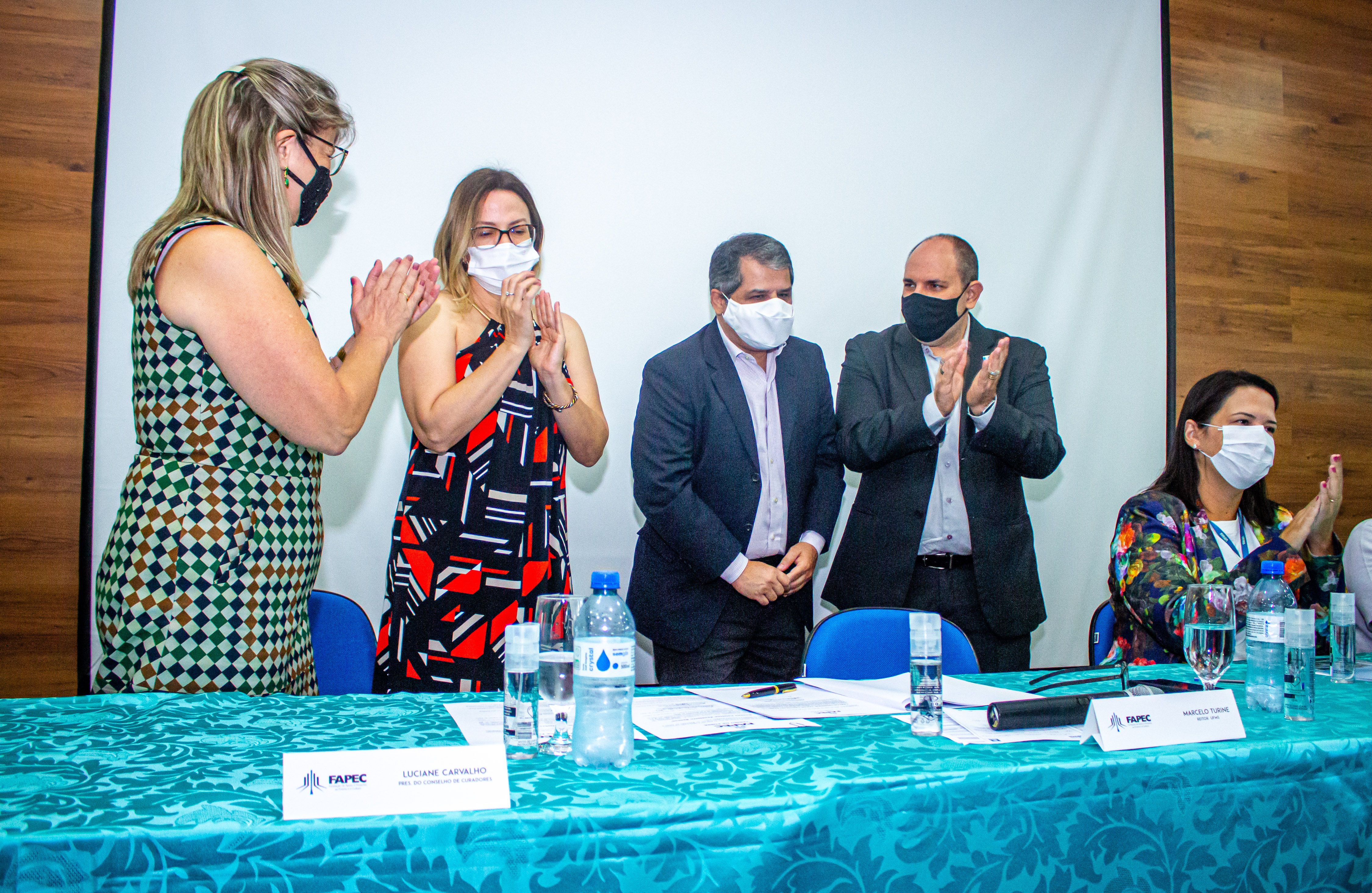 A cerimônia de posse foi realizada no auditório do Complexo EaD e Escola de Extensão, observando todas as medidas de biossegurança. Participaram os gestores da UFMS e diretores da Fapec, além de pró-reitores, diretores de agência e servidores da Universidade. “Ficamos muito felizes em ter na presidência do Conselho Curador da Fapec a professora Luciani Coimbra. Tenho certeza que com seu conhecimento e experiência em Direito Administrativo você vai nos ajudar a inovar e criar procedimentos e processos para modernizar a gestão da Fundação. Também gostaria de agradecer aos demais presidentes e, em especial, a professora Rosana Zanelatto, reconhecemos seu trabalho e ficamos muito felizes em ter aceitado integrar o Conselho enquanto vice-presidente”, disse o reitor Marcelo Turine. Luciani integra o corpo docente da Faculdade de Direito e Rosana, da Faculdade de Artes, Letras e Comunicação.