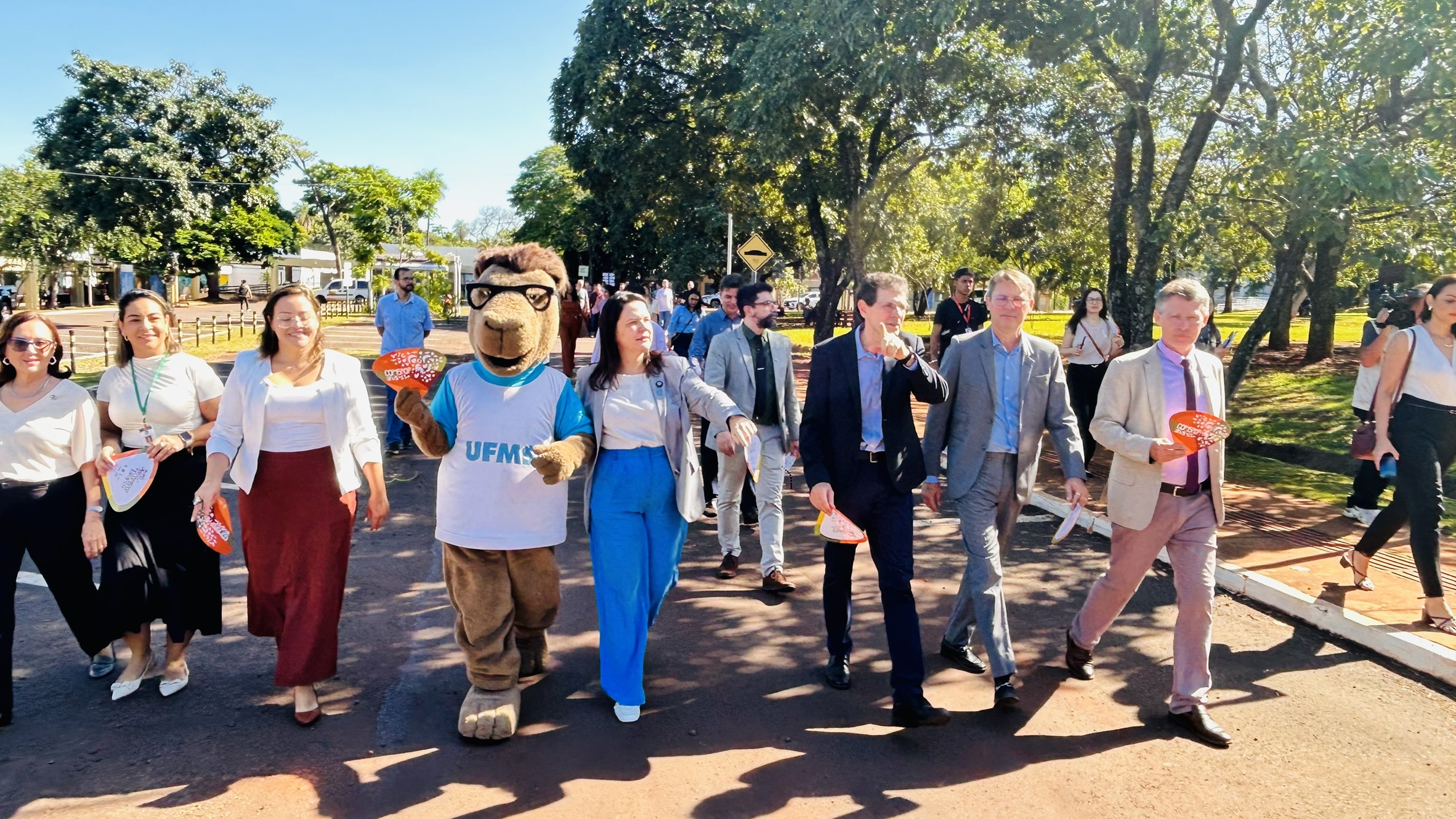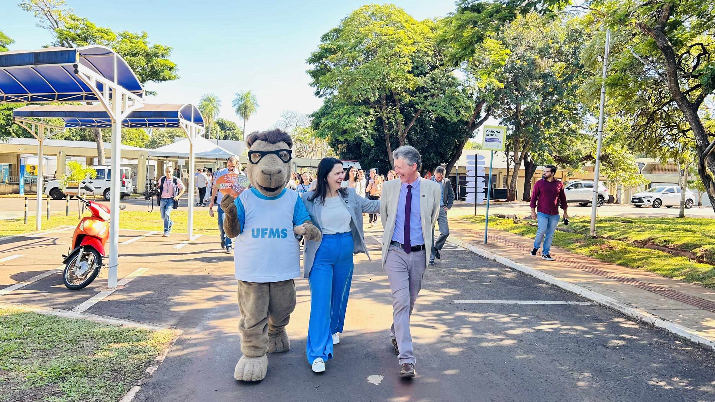 “Nossa universidade está muito presente nesse evento promovido pela ONU, onde discutimos temas importantes. Nós, como universidade, temos o dever de trazer esse assunto para a comunidade, abrir essa discussão para toda a sociedade. Esse é o papel da universidade: estar aberta. Daqui a pouco, crianças estarão chegando, jovens, adultos, nossa própria comunidade interna. É uma grande festa. Temos o planetário — o primeiro fixo de Mato Grosso do Sul —, temos a COP científica, cultural, esportiva. A programação está maravilhosa. Quero agradecer imensamente a todos. Nada se faz sem toda a universidade envolvida — estudantes, técnicos, docentes, pró-reitores, diretores. Todos estão envolvidos nessa grande festa. Também quero agradecer ao Conselho de Reitores de Instituições de Ensino Superior de Mato Grosso do Sul (Crie-MS), às universidades de outros estados que estão conosco aqui e também na Zona Azul, no Bosque Expo”, afirmou o vice-reitor Albert Schiaveto.