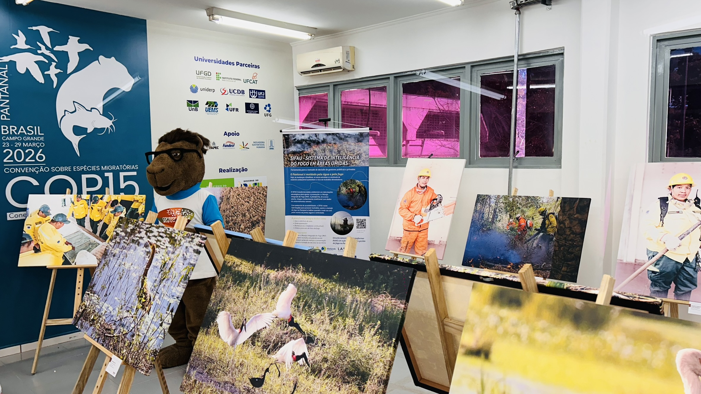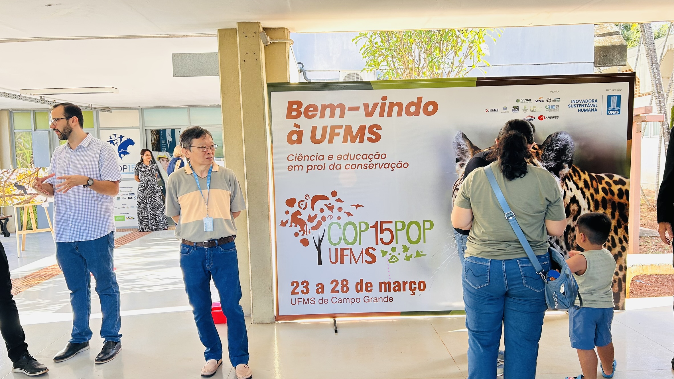 A partir desta segunda-feira (23), a UFMS, em Campo Grande, recebe uma programação especial em referência à 15ª Conferência das Partes sobre Espécies Migratórias, promovida pela Organização das Nações Unidas, no Expo Bosque, no Shopping Bosque dos Ipês. Em paralelo, a UFMS e parceiros realizam a COP 15 POP, um evento com diversas atividades gratuitas que unem ciência, cultura e biodiversidade. “Nossa COP15 POP não precisa de cadastro. Ela é indicada para pessoas de zero a 125 anos e é fruto do esforço de todas as instituições, do entendimento de que é importante conseguirmos levar os temas científicos para todas as pessoas”, disse a reitora Camila Ítavo na abertura do evento, realizada em frente ao Escritório da COP15 POP, localizado no Corredor Central.