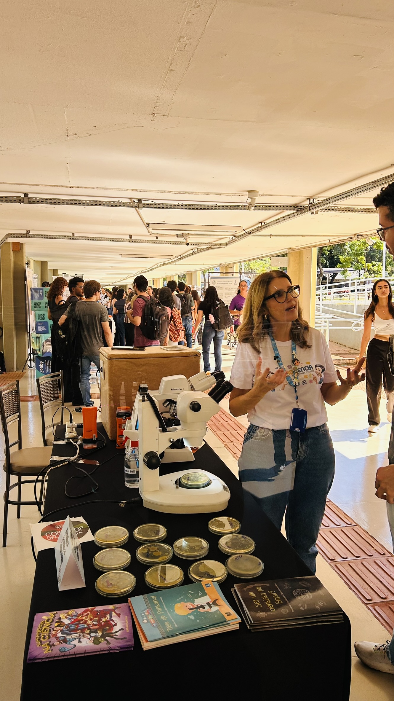 Após a abertura, todos puderam caminhar pelo Corredor Central e conhecer algumas das atividades apresentadas. “Migrar é natural; o que não é natural são as barreiras. Aqui, fortalecemos nossa rede de instituições. Estamos mostrando à sociedade a ciência de forma acessível. Esta semana apresenta todo o avanço científico produzido por nós, com apoio do Governo do Estado, das fundações e de todos os parceiros. Este corredor foi batizado de ‘Onça-pintada’, destacando a migração da espécie nas Américas. Teremos trilhas, observação de aves e cinema. Tenho certeza de que estamos presenciando algo histórico”, finalizou a reitora Camila.