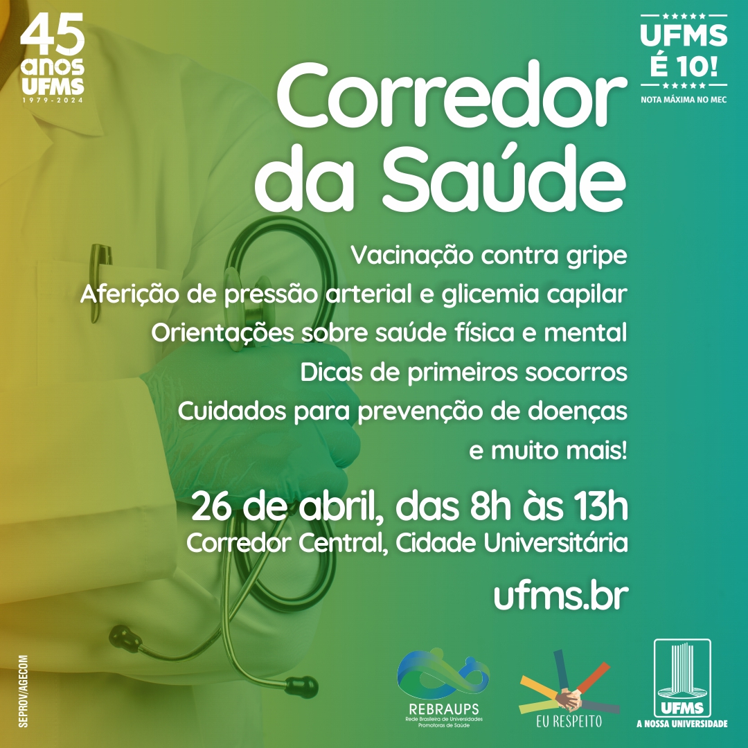 O Corredor da Saúde faz parte da Campanha Eu Respeito de abril. A ação é realizada pela Universidade em parceria com os cursos de Psicologia, Enfermagem, Fisioterapia, Nutrição e Farmácia, por meio das ligas acadêmicas, do Programa de Educação Tutorial (PET) Saúde, e de projetos de pesquisa e extensão. O evento também terá a participação da Secretaria Municipal de Saúde de Campo Grande e da Casa da Mulher Brasileira, que promove debate sobre enfrentamento da violência contra a mulher.