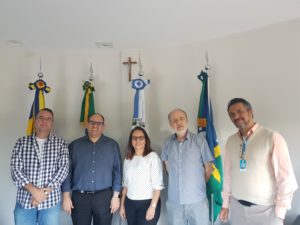 Na última sexta-feira (17), a professora Roosiley dos Santos Souza, do curso de Administração (CPAN) e o diretor do Centro de Intendência da Marinha em Ladário, Capitão de Fragata (IM) Paulo Lameira Ferreira da Silva estiveram com o reitor da UFMS, professor Marcelo Turine, o pró-reitor de Extensão, Cultura e Esporte, Marcelo Fernandes, e o professor Edson Cáceres para tratar do acordo de cooperação para o desenvolvimento do programa.
