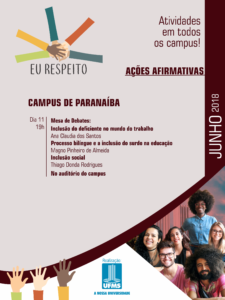 O campus de Paranaíba (CPAR) realiza uma série de mesas de debate sobre inclusão. Elas são parte do cronograma da campanha Eu Respeito de junho, que tem o tema Ações Afirmativas.