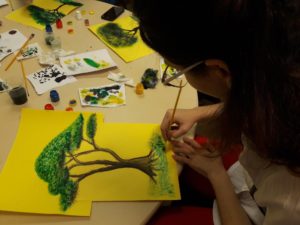 • Oficina de Pintura Matérica com a professora do curso de Pedagogia CPPP/UFMS, Angela Fakir.