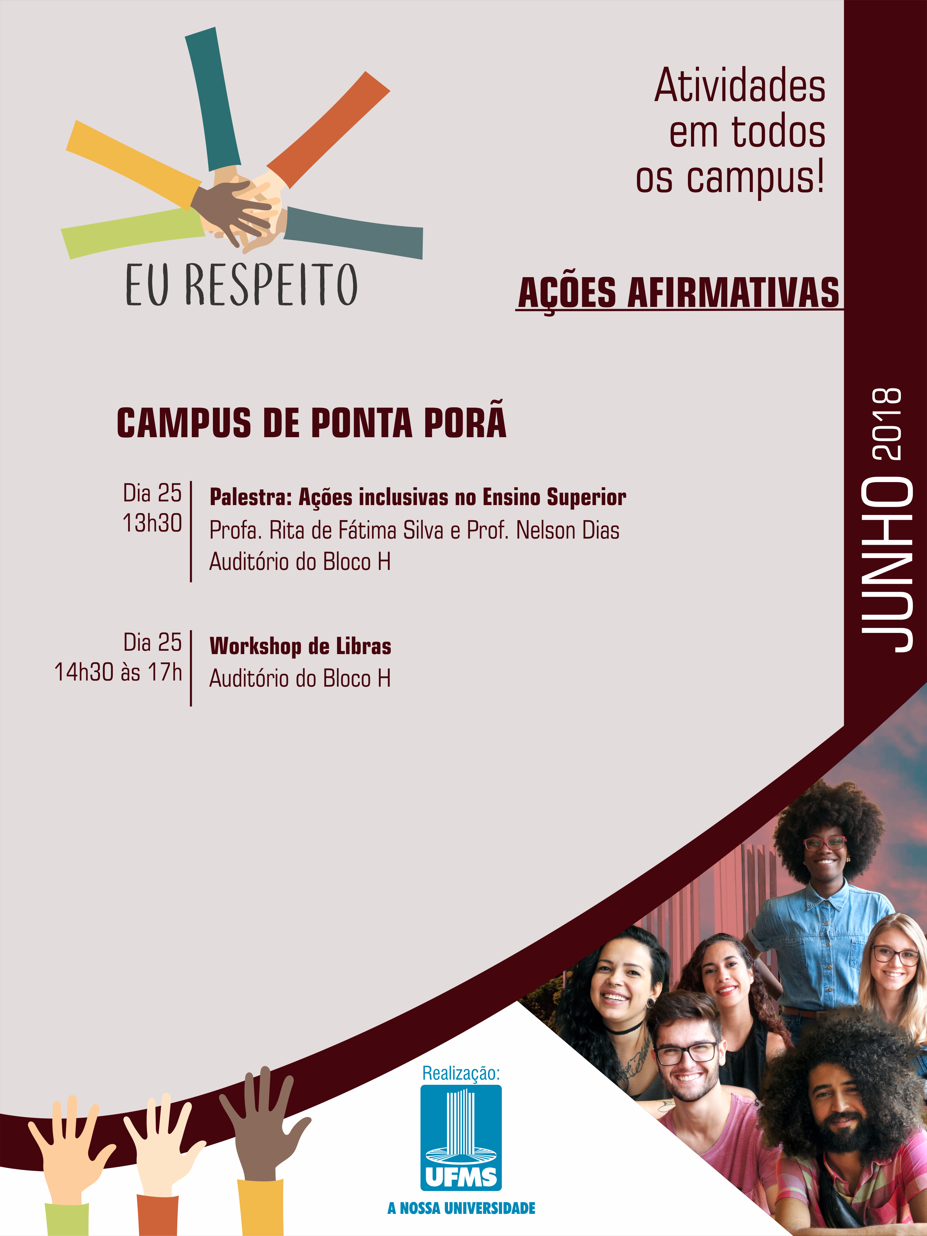 O campus de Ponta Porã (CPPP) promove duas atividades da campanha Eu Respeito, que no mês de junho tem foco em Ações Afirmativas. Ambas serão no dia 25, no período da tarde.