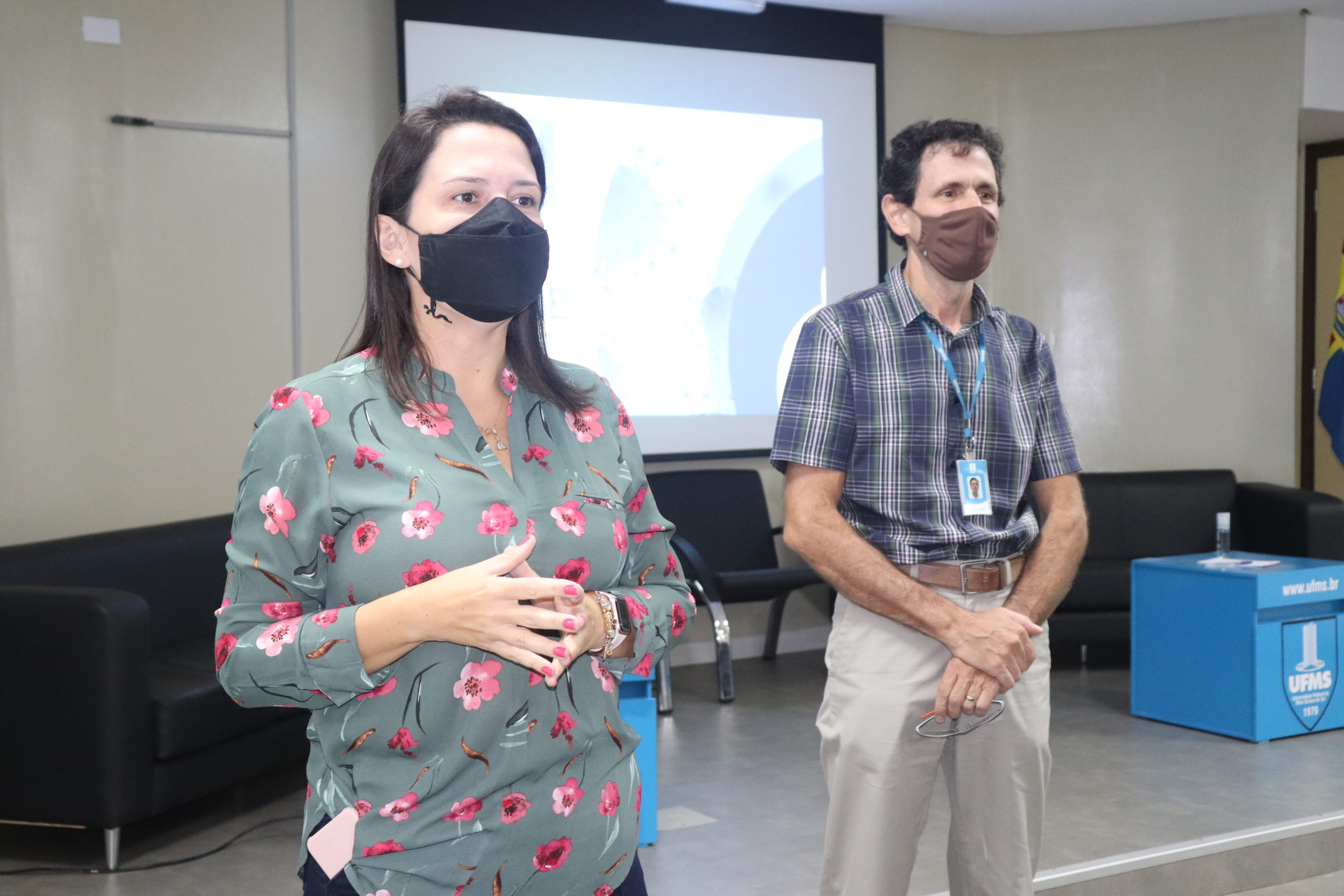 Vice-reitora Camila Ítavo, primeira presidente do COE, e professor Albert em uma das reuniões