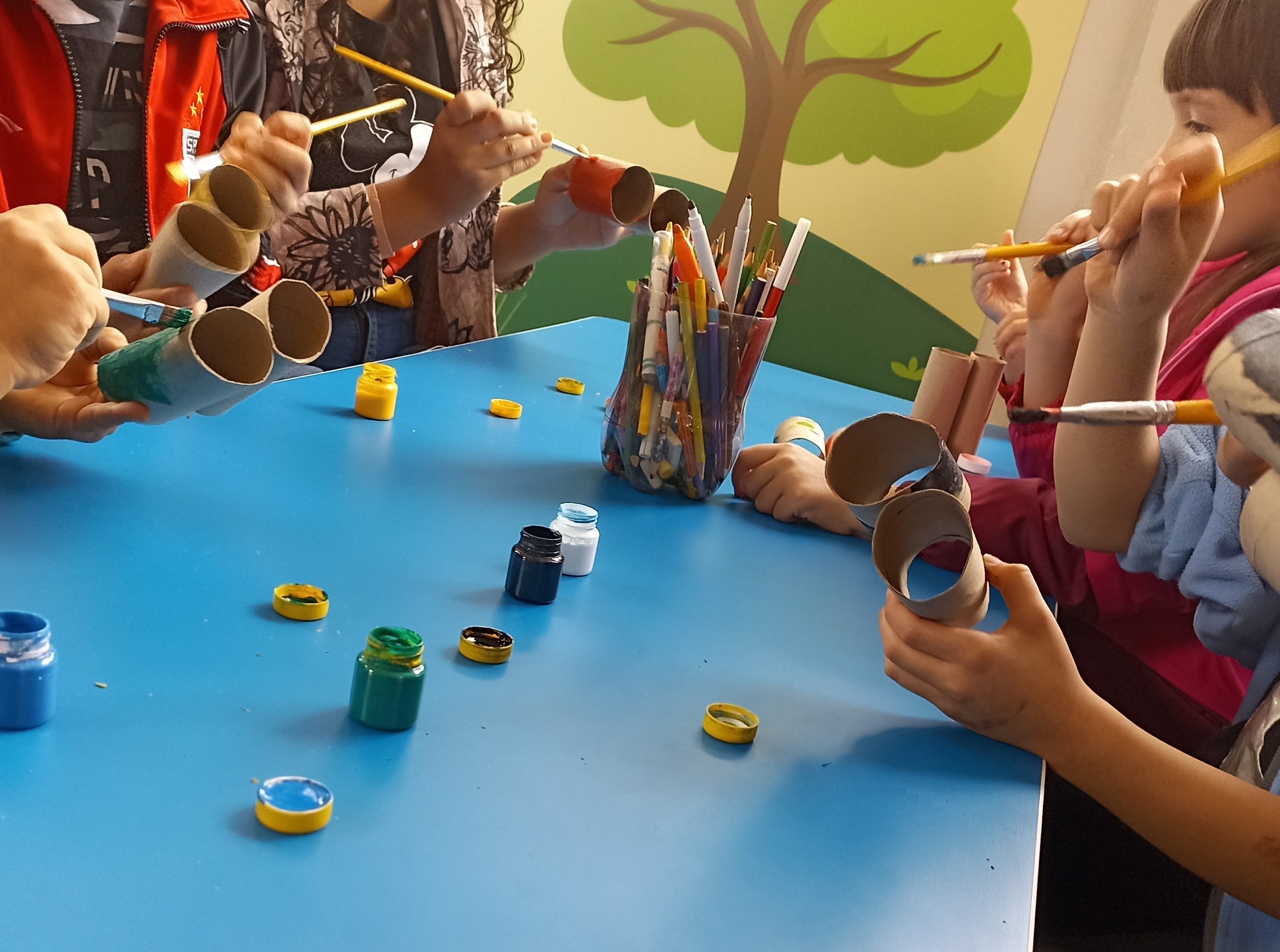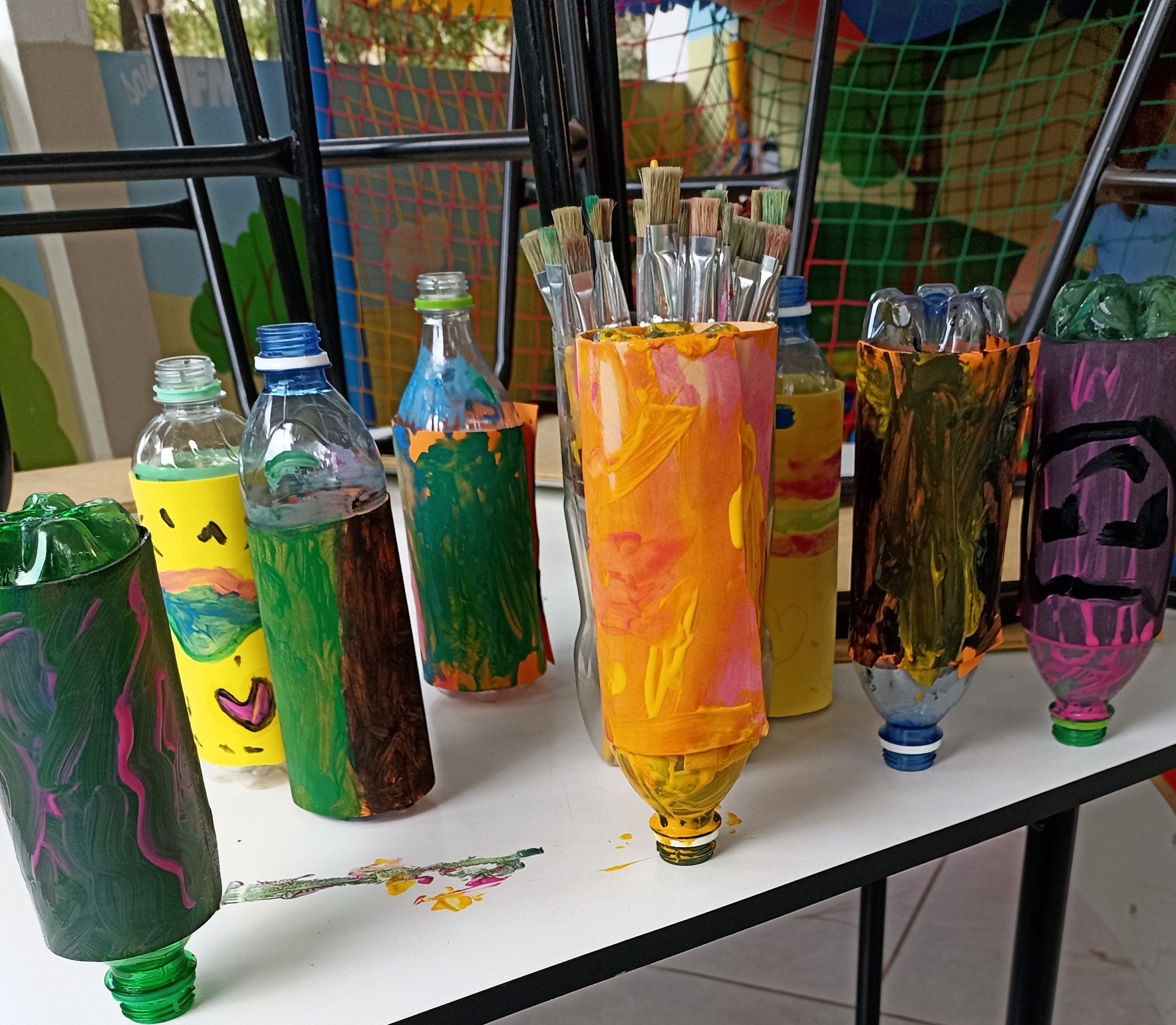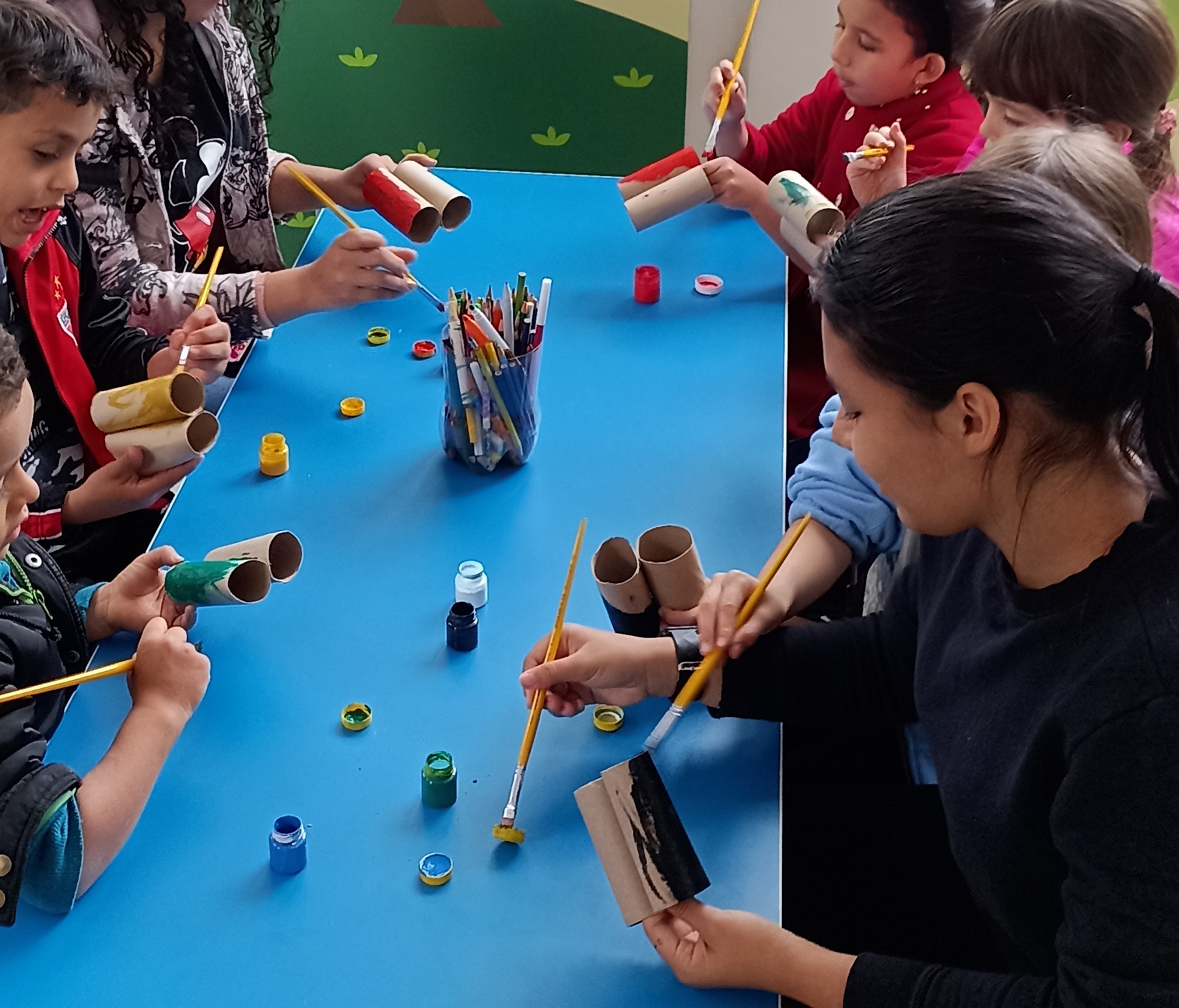 Crianças confeccionam brinquedos com materiais sustentáveis na Brinquedoteca