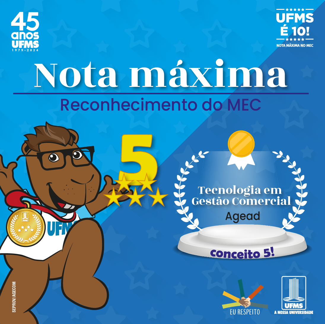 O curso de graduação de Tecnologia em Gestão Comercial da Agência de Educação Digital e a Distância (Agead) recebeu nota máxima em avaliação realizada pelo Ministério da Educação. Para a atribuição do conceito cinco, foram considerados a organização didático-pedagógica dos cursos, o corpo docente e a infraestrutura, a partir da avaliação in loco.