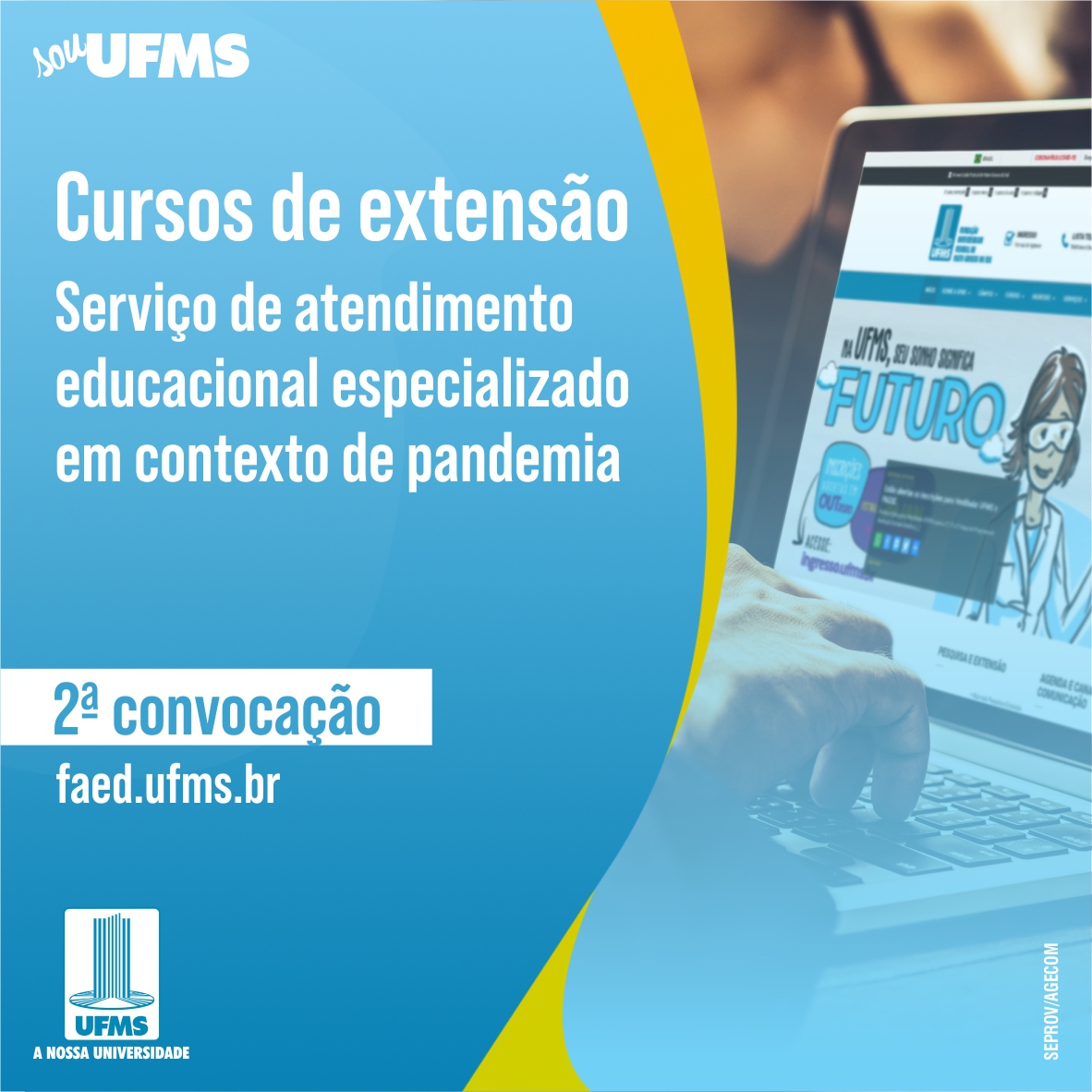 Inscritos para o curso de extensão “Serviço de atendimento educacional especializado em contexto de pandemia” já podem conferir a lista com a 2ª convocação neste link, no site da Faculdade de Educação (Faed). O curso é realizado pela UFMS em parceria com o Ministério da Educação, por meio da Secretaria de Modalidades Especializadas de Educação.