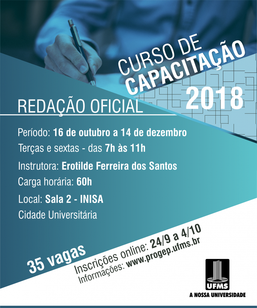 Até o dia 4 de outubro, os servidores interessados no curso “Redação Oficial” podem se inscrever on-line neste link. A oferta de 35 vagas é para a Cidade Universitária.