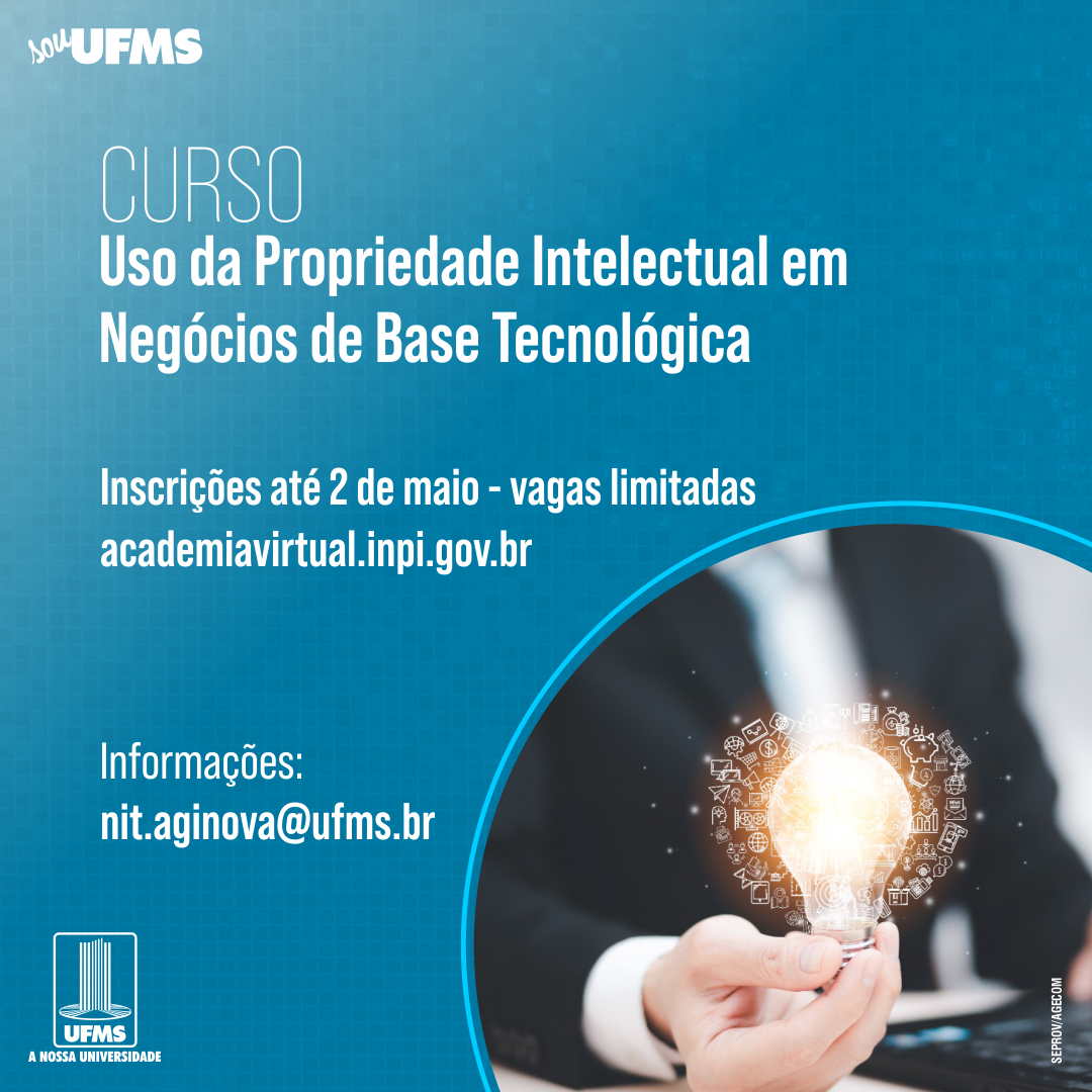 Interessados no “Uso da Propriedade Intelectual em Negócios de Base Tecnológica” têm até 2 de maio para participarem do curso gratuito e virtual ofertado pelo Instituto Nacional de Propriedade Industrial (INPI). As inscrições podem ser feitas no portal academiavirtual.inpi.gov.br.