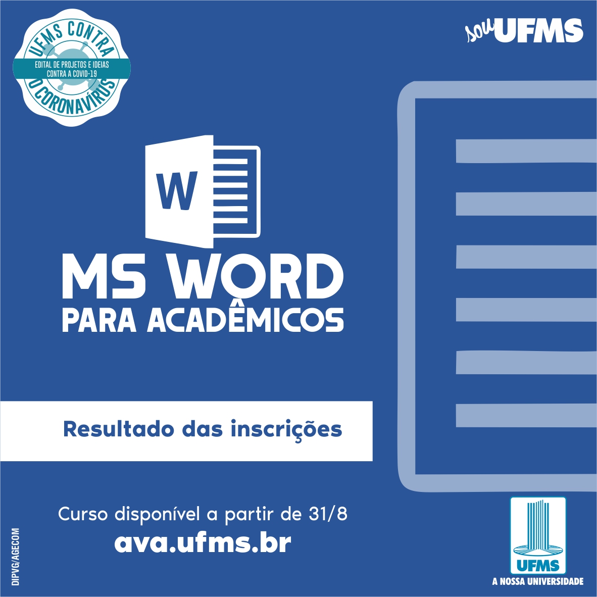 Foi divulgado o resultado das inscrições para o curso de extensão MS Word para Acadêmicos. Ofertado na modalidade a distância, 2893 estudantes serão beneficiados com o conteúdo.