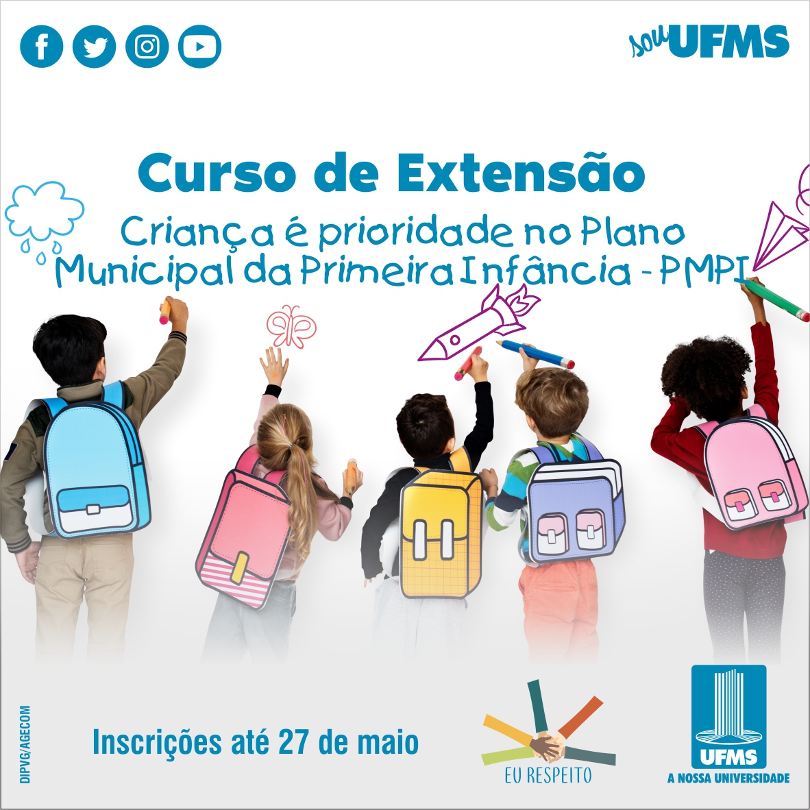 O curso de extensão Criança é prioridade no Plano Municipal da Primeira Infância – PMPI está com novas turmas abertas e 150 vagas são destinadas para a UFMS. As inscrições vão até o dia 27 de maio.
