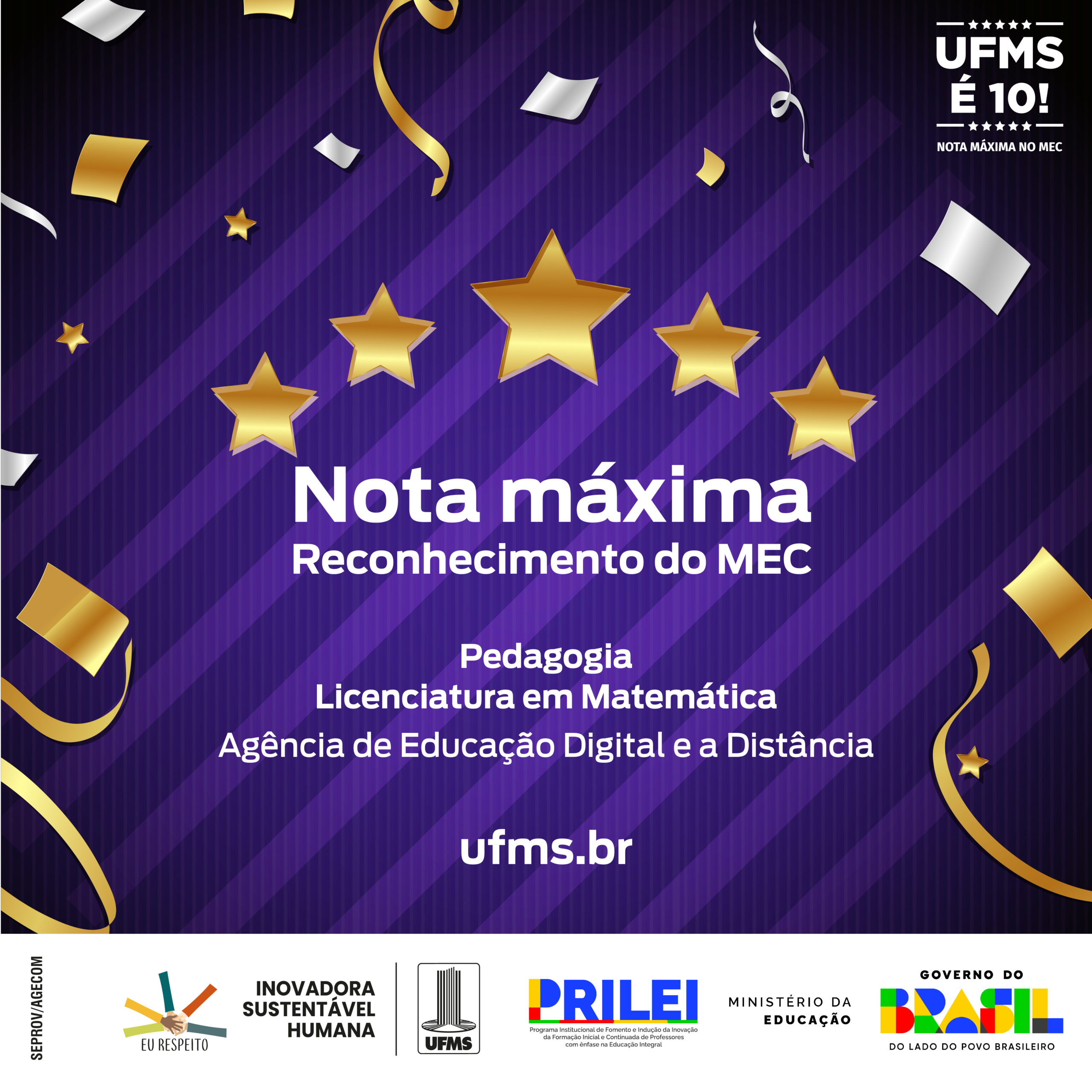 Em 2025, 25 cursos de graduação foram avaliados com nota máxima. Entre eles estão os bacharelados e as licenciaturas em: Matemática e Pedagogia, da Agead; Ciências Sociais, da Faculdade de Ciências Humanas; Letras – Português e Inglês, da Faculdade de Artes, Letras e Comunicação; Sistemas de Informação e Ciência da Computação, da Faculdade de Computação; Pedagogia, da Faculdade de Educação; Física, do Instituto de Física; Matemática, do Instituto de Matemática; Química, do Instituto de Química; Ciências Biológicas e Pedagogia, da UFMS do Pantanal; Letras – Português, da UFMS de Coxim; Ciências Biológicas, Matemática, Pedagogia, História, Geografia, Letras – Português e Inglês e Licenciatura Intercultural Indígena da UFMS de Aquidauana; e Ciências Biológicas, Geografia, História, Matemática e Pedagogia, da UFMS de Três Lagoas.