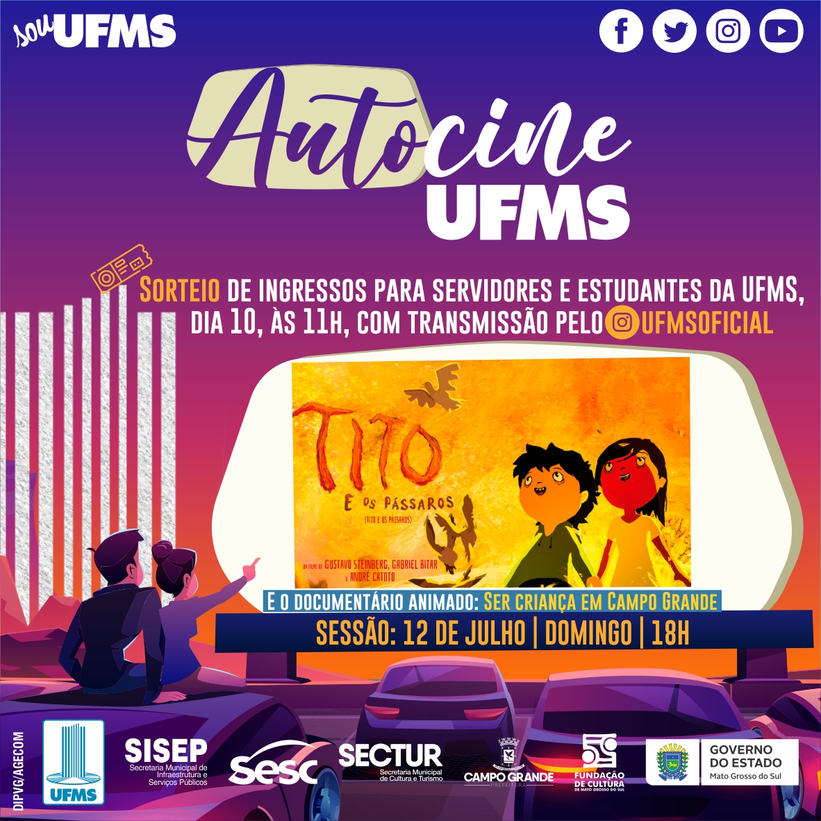Neste domingo, 12, o Autocine UFMS exibe duas animações nacionais: o curta-metragem Ser criança em Campo Grande e o longa-metragem Tito e os pássaros. Devido às medidas adotadas pela Prefeitura Municipal para combater a pandemia da Covid-19 na capital, haverá apenas uma sessão, às 18h.