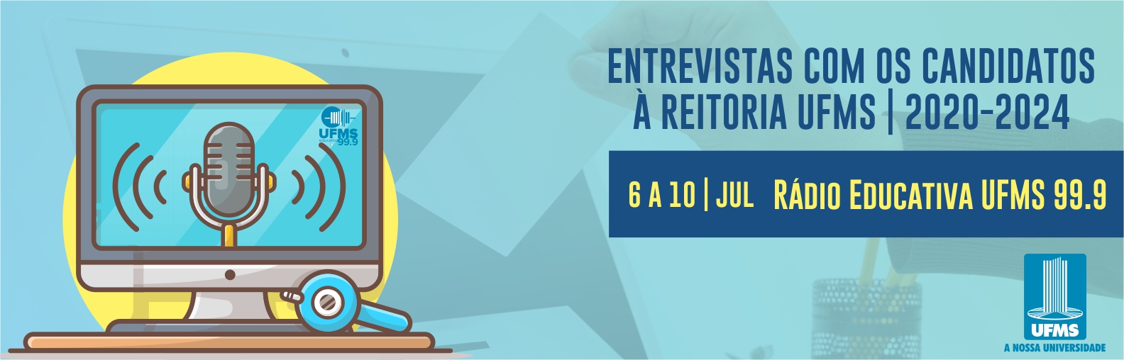 Quanto às entrevistas à Rádio Educativa UFMS 99.9, definiu-se que serão veiculadas no período de 6 a 10 de julho de 2020, diariamente, das 7h15 às 7h45, das 13h às 13h30, e das 18h às 18h30, de segunda a sexta-feira, respeitando a ordem do posicionamento das chapas no Sistema Eletrônico de Consulta.