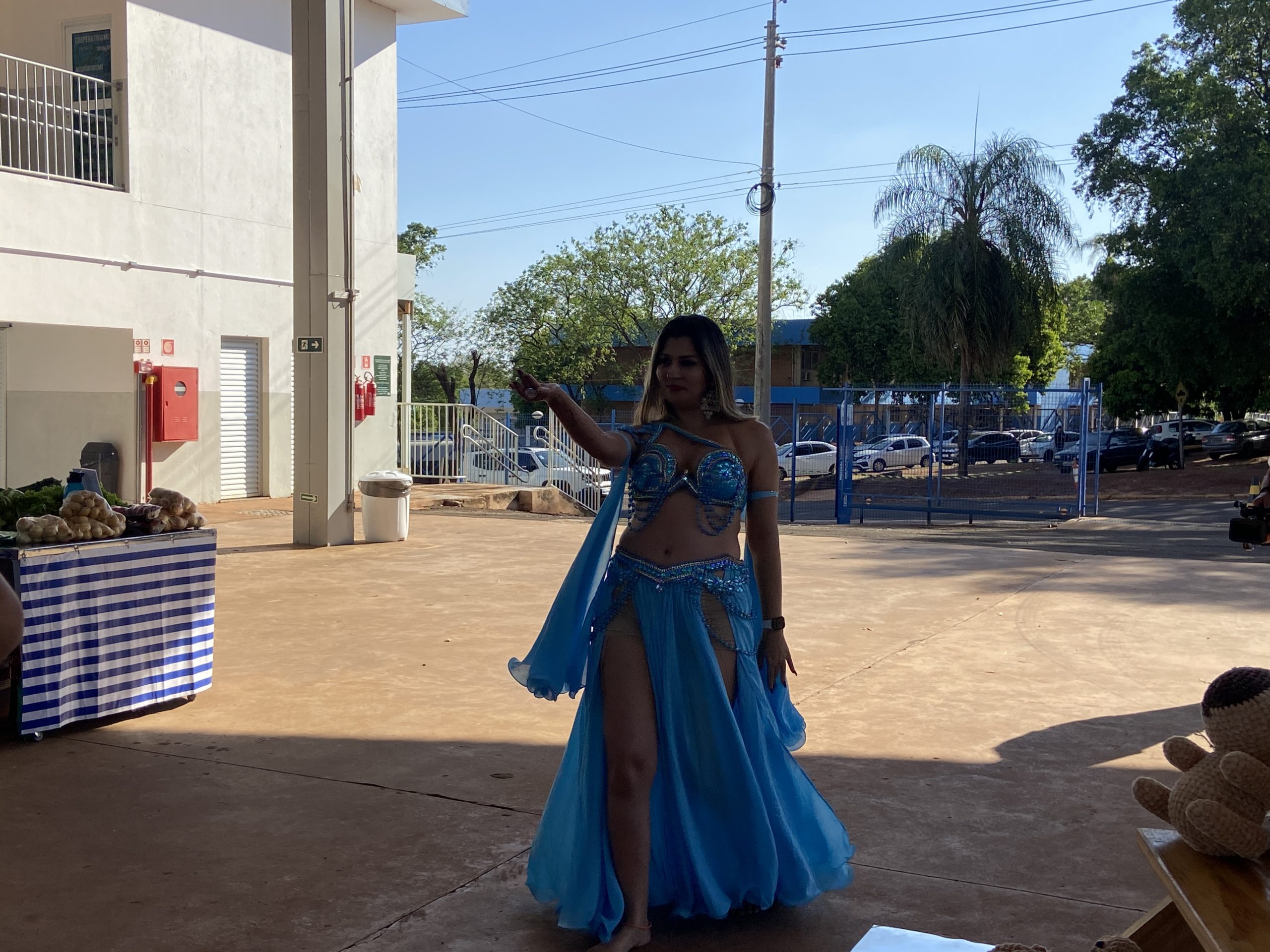 Já a apresentação da dança do ventre uniu o movimento corporal com o setembro amarelo, já que a professora também é psicóloga no Serviço Escola de Psicologia, vinculado à Faculdade de Ciências Humanas. “Essa música tem um significado muito profundo e importante, que em português significa eu te amo. Eu trouxe especialmente para hoje, pelo momento que a gente está vivendo também no Setembro Amarelo. Hoje de manhã, a gente teve um momento aqui no Mercado Escola sobre o autocuidado, saúde mental, a importância da gente se olhar, purificar as nossas emoções e tudo. Então, acho que essa música vem também trazendo essa mensagem, do quanto a gente precisa cuidar da gente, que esse amor deve começar dentro da gente, e nada mais bonito do que falar dançando. Essa é a mensagem que eu trago hoje”, explicou Laura.