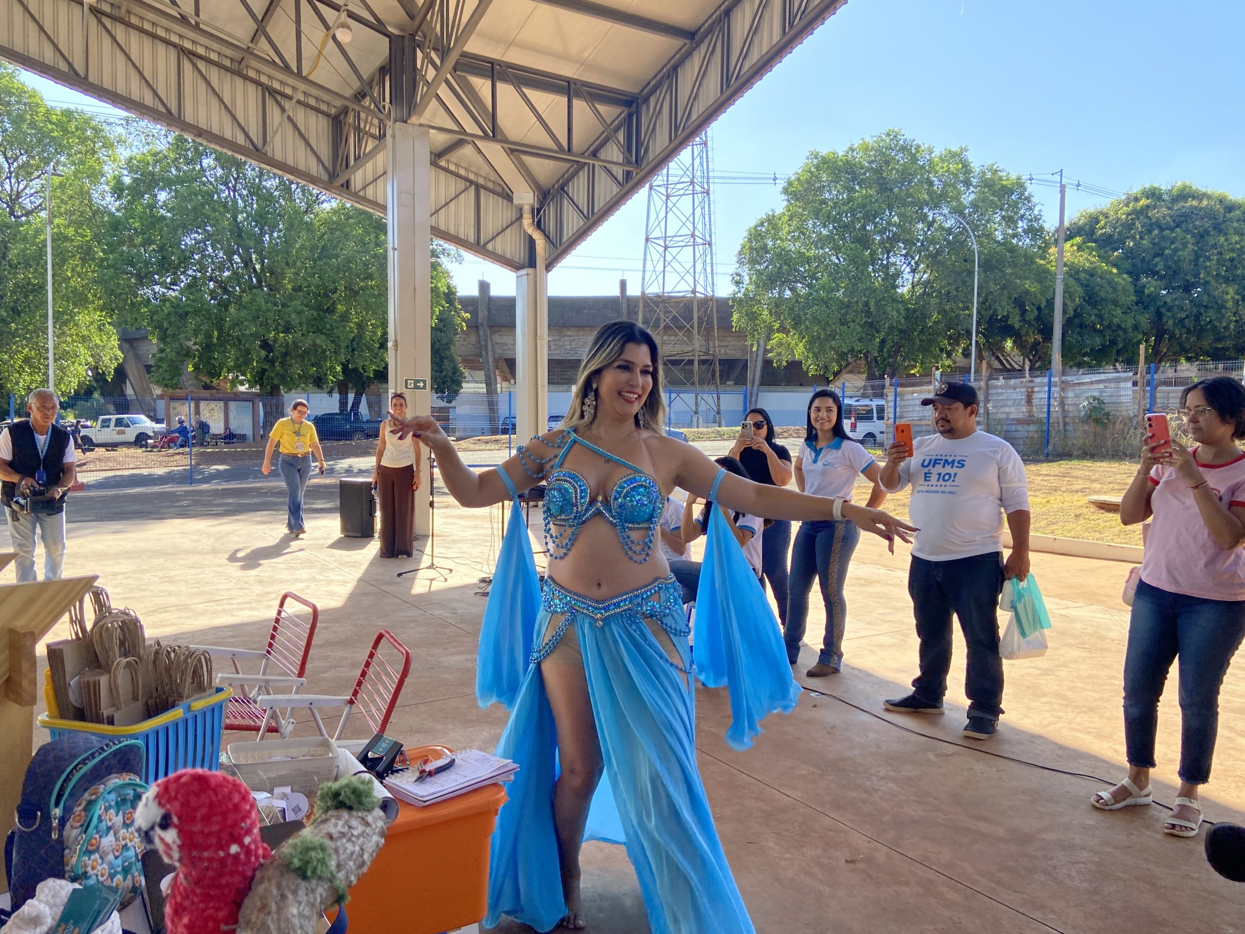 Todas as quintas-feiras, o Mercado Escola da UFMS realiza a comercialização de produtos da agricultura familiar e de economia criativa, com apresentações culturais. Durante o Festival Mais Cultura, as atrações foram ainda mais especiais: os estudantes Ivi Rondon e Eduardo Golfetto, o Coral do Colégio Militar (CMCG) e dança do ventre, com a professora da Escola de Dança, Laura Helena Santanna.