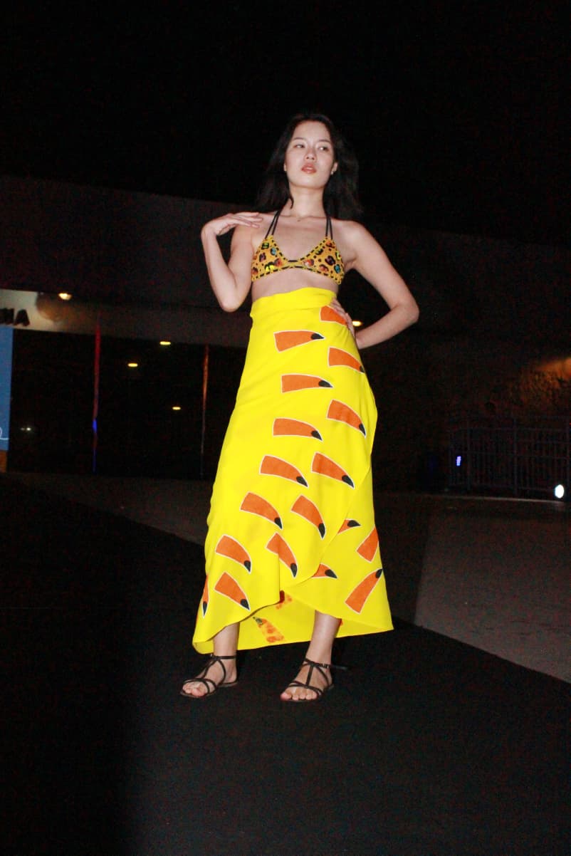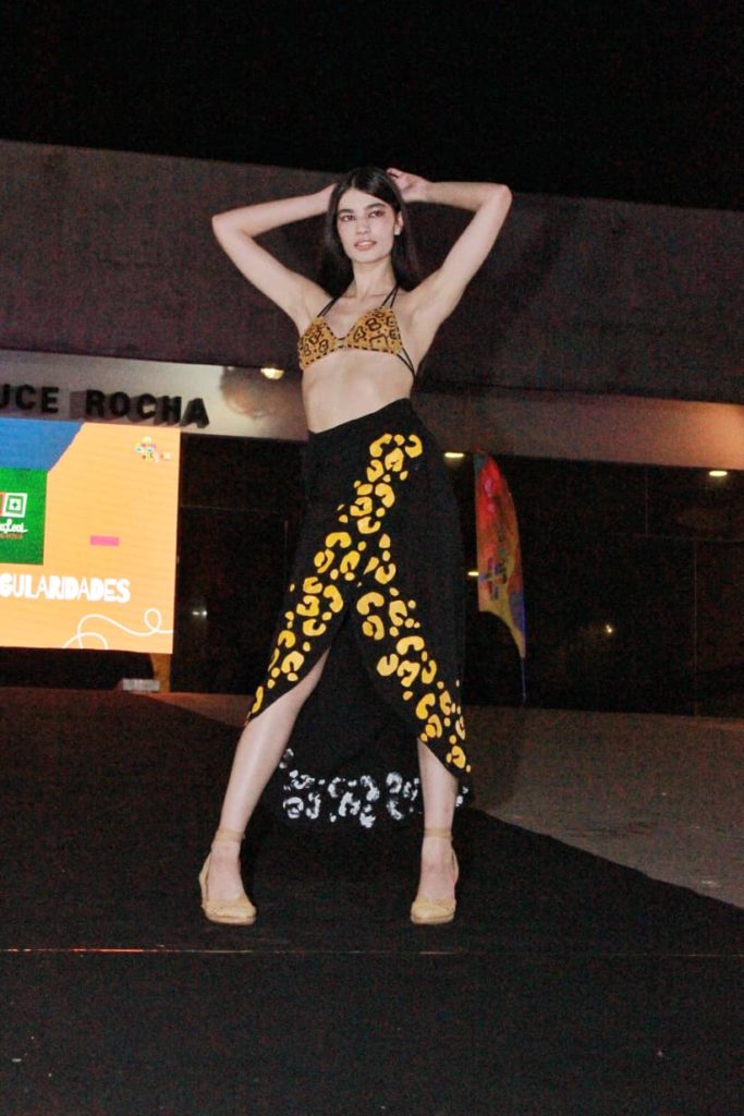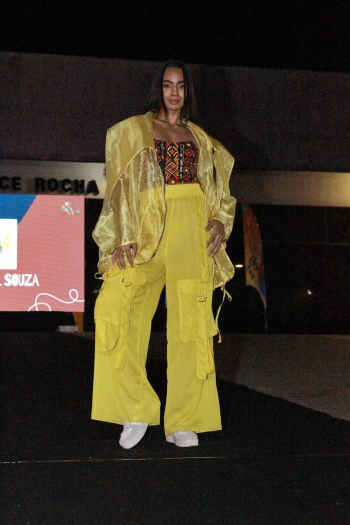 A estilista Patrícia Rodrigues, da marca Boli Boli, apresentou a coleção Afropantaneira, que aborda diversas estéticas culturais, como caribenha, latina e indígena, reunidas em uma proposta única e autoral. “A moda não é só uma estética do vestir, mas ela também é uma estética de discussão crítica sobre o vestir. A minha marca, que trabalha com sustentabilidade, também é uma marca voltada para essa consciência de como a gente se constrói no mundo politicamente, socialmente. A própria possibilidade de customização e do upcycling traz essa reflexão desse corpo no mundo. Quem é esse corpo? O que a gente veste? Por que a gente veste? […] Eu acho que a minha marca veio se fundamentando dentro do território de Mato Grosso do Sul, com todos esses apontamentos regionais e culturais”, explicou.