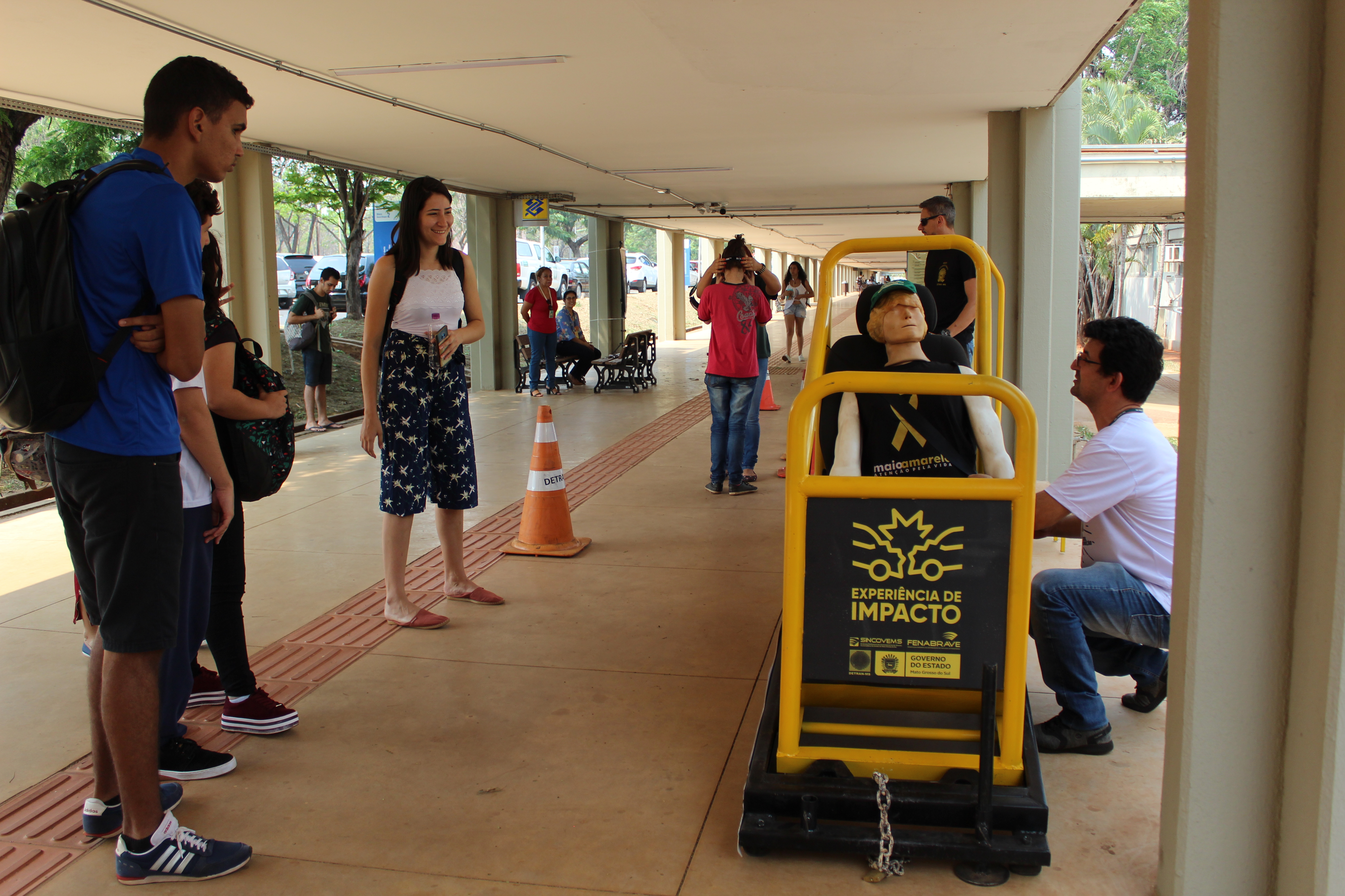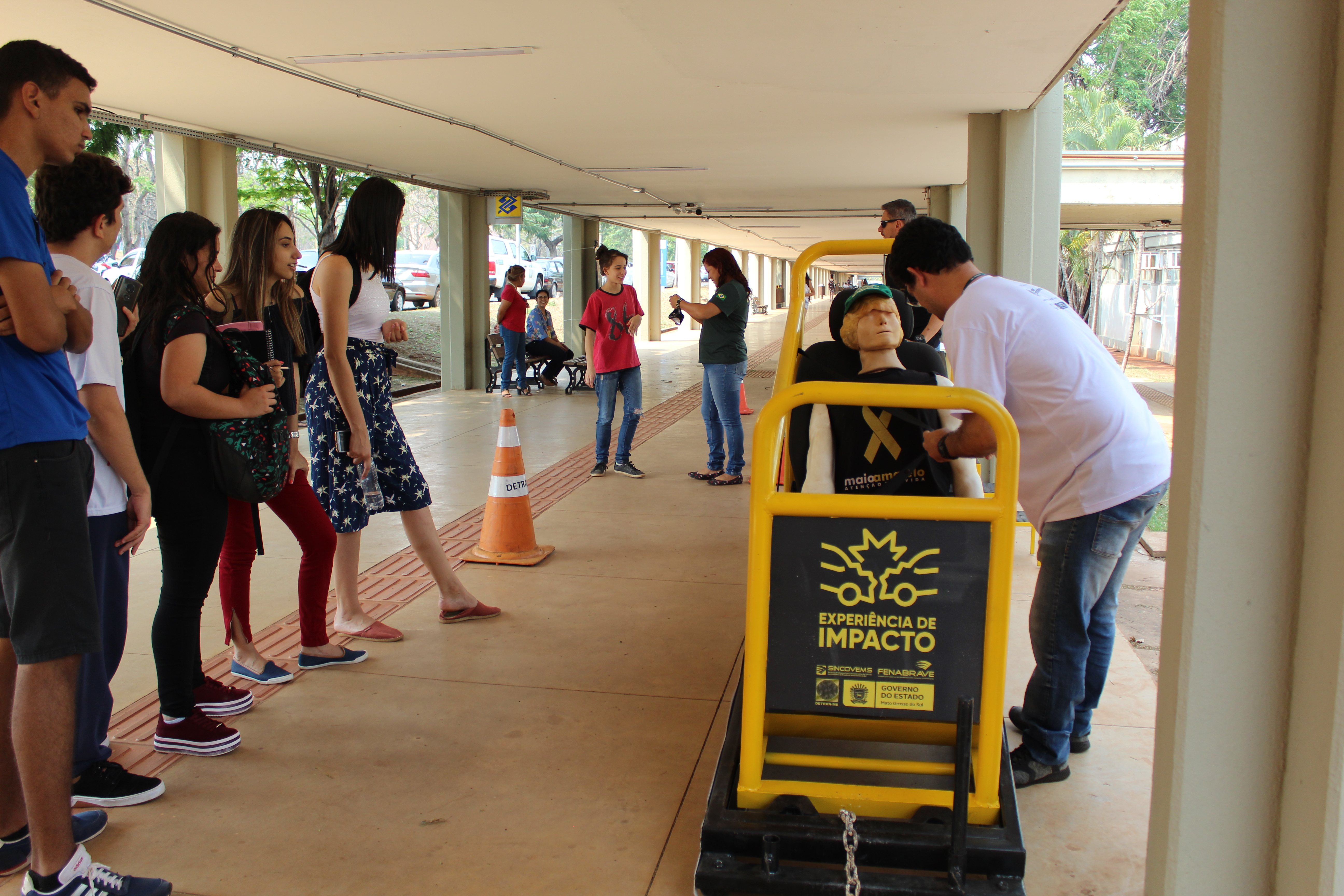 Comunidade acadêmica pode participar da simulação de embriaguez e assistir a simulações de impacto.