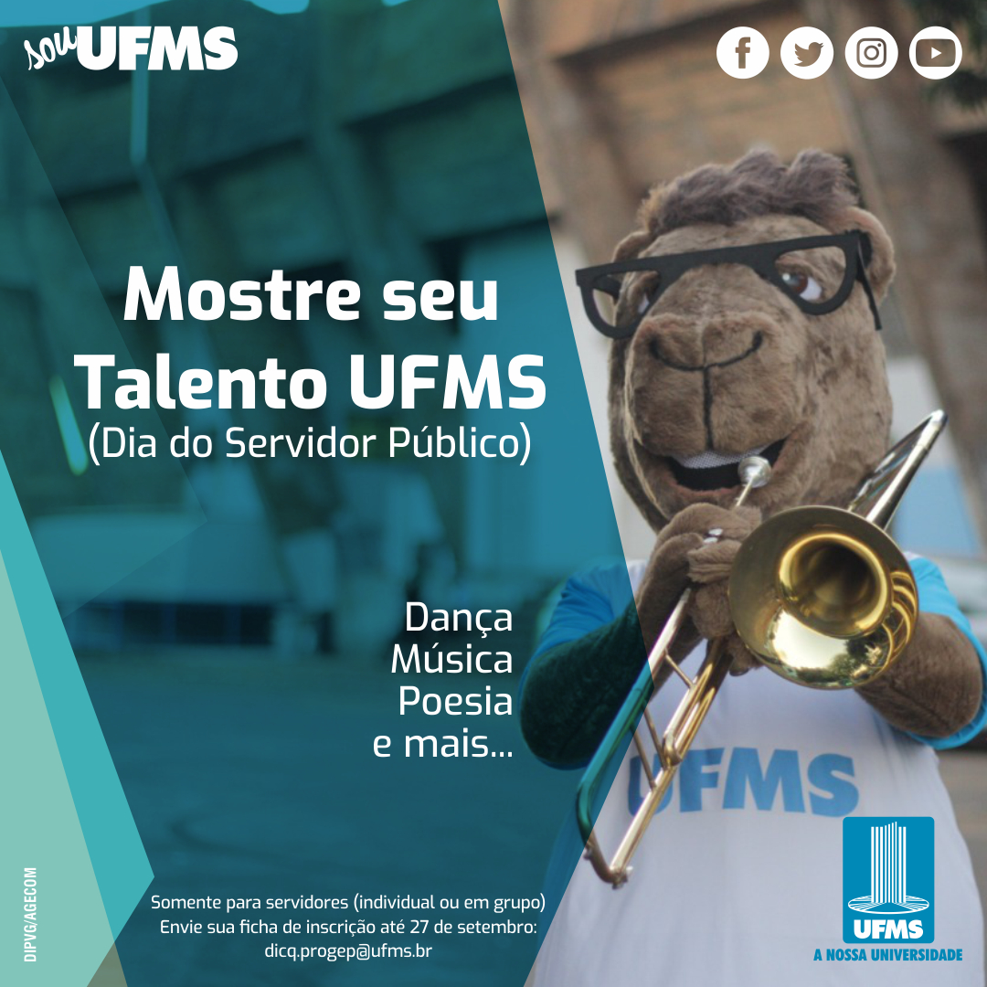 Em comemoração ao Dia do Servidor Público (28 de outubro), a Pró-Reitoria de Gestão de Pessoas (Progep) promove o “Mostre seu Talento UFMS”. O objetivo da ação é reunir no Teatro Glauce Rocha apresentações culturais que valorizem os talentos dos técnico-administrativos e docentes da Universidade.