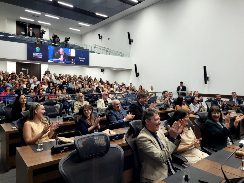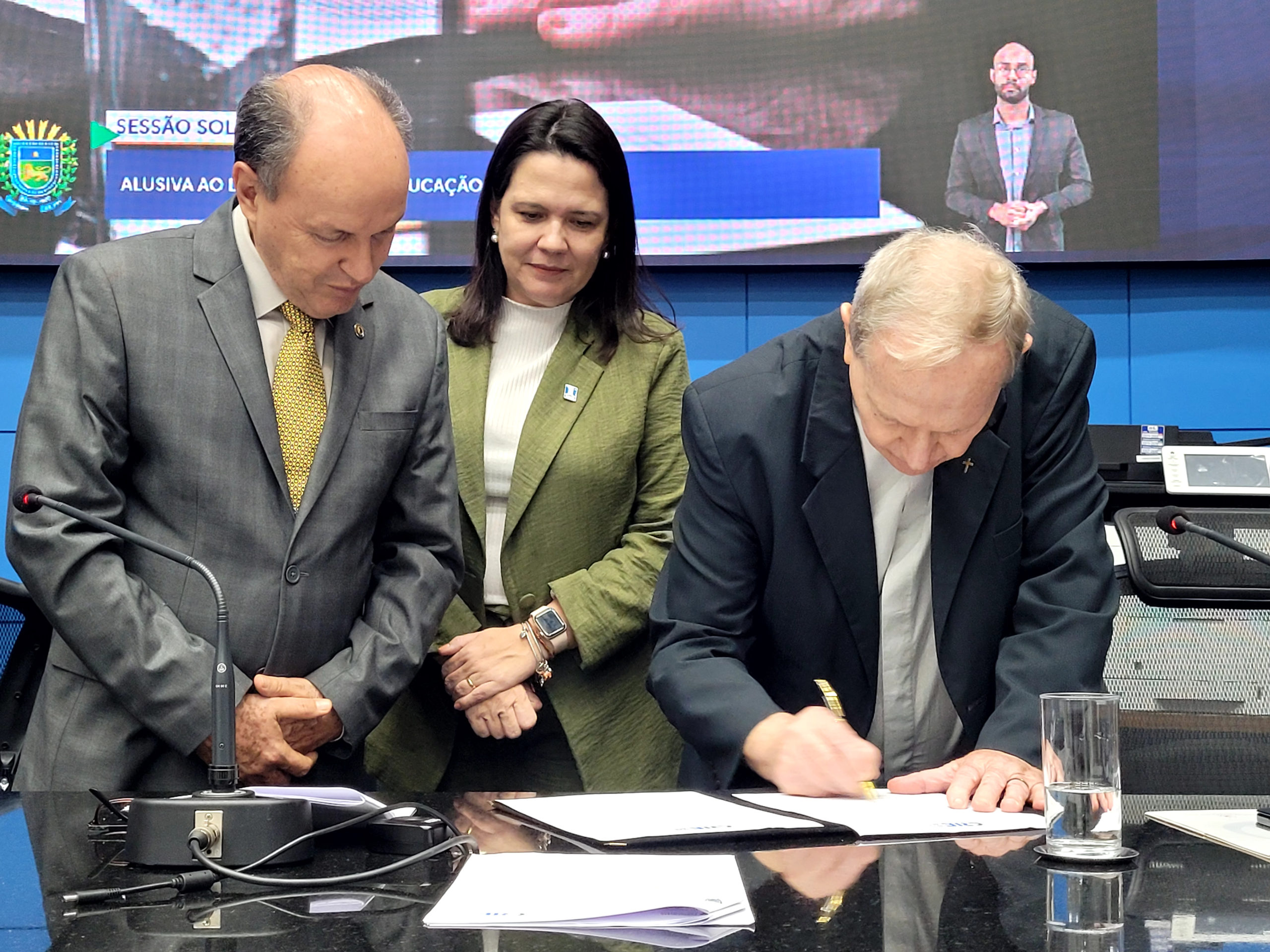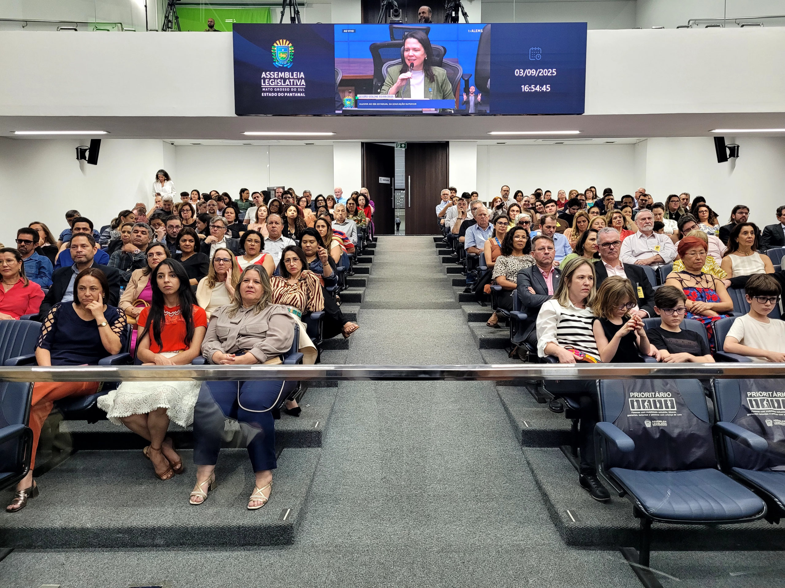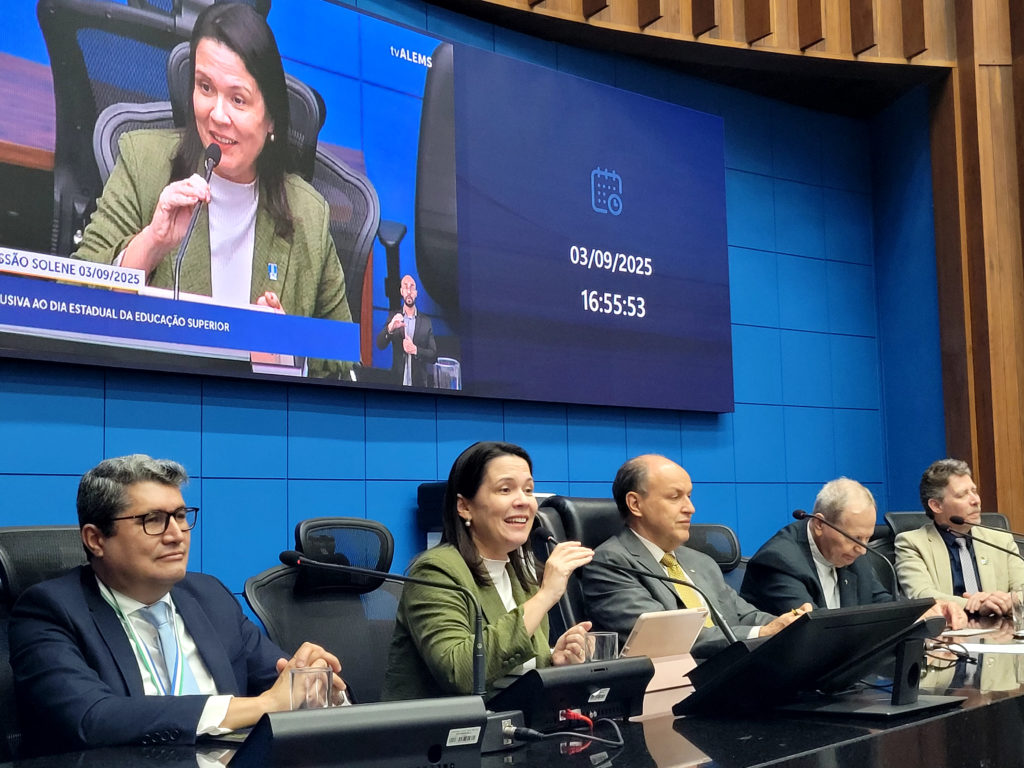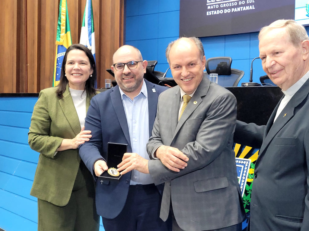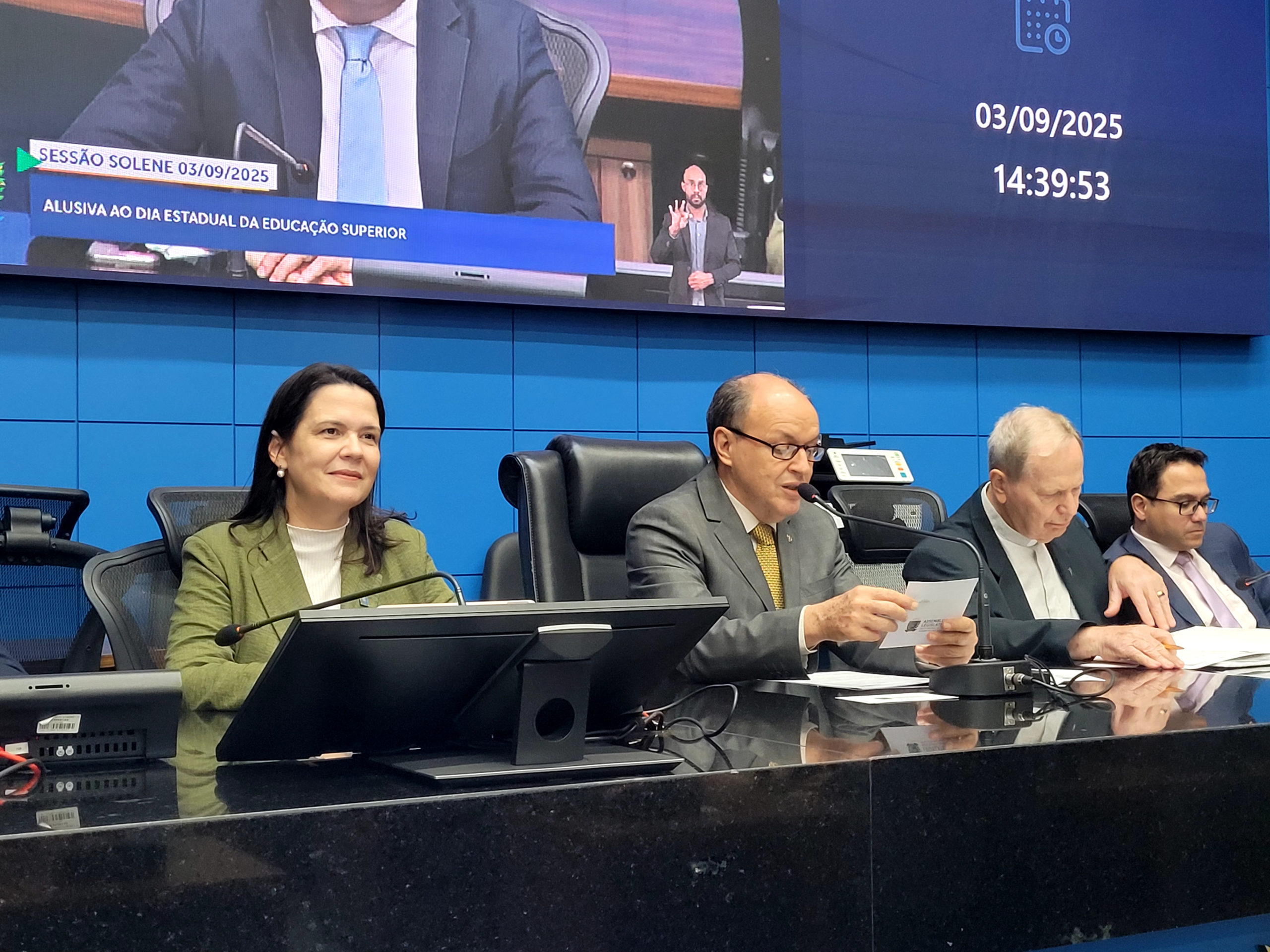 Como forma de homenagear a todos que contribuíram e contribuem para a educação superior em Mato Grosso do Sul, foram entregues na tarde desta quarta-feira, 3, a Medalha Darcy Ribeiro para a professora Maria Ligia Rodrigues Macedo e a Comenda Pedro Pedrossian para os professores Gilson Rodolfo Martins e Celso Vitorio Pierezan, homenageados pela Assembleia Legislativa de Mato Grosso do Sul (Alems). Durante a sessão solene realizada no Plenário Deputado Júlio Maia – Palácio Guaicurus, a reitora Camila Ítavo e a reitora do Instituto Federal de Mato Grosso do Sul (IFMS), Elaine Cassiano, assumiram a gestão do Conselho de Reitores das Instituições de Ensino Superior de Mato Grosso do Sul (Crie-MS). Pela primeira vez na história, a presidência e a vice-presidência são ocupadas por mulheres.