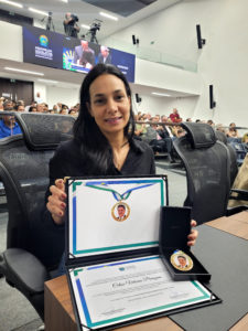 A homenagem, instituída pelo deputado estadual Junior Mochi, é entregue a servidores de destaque indicados pelas instituições de ensino superior que compõem o Crie-MS. Para a reitora Camila Ítavo, as homenagens são significativas para a Universidade e também para a educação superior do Estado. “É um momento especial em que a gente ilumina os nossos talentos e faz esse reconhecimento. Acho que as universidades se tornam mais fortes com a trajetória de cada um desses homenageados e homenageadas nesse dia tão especial para a educação superior de Mato Grosso do Sul”, afirmou.
