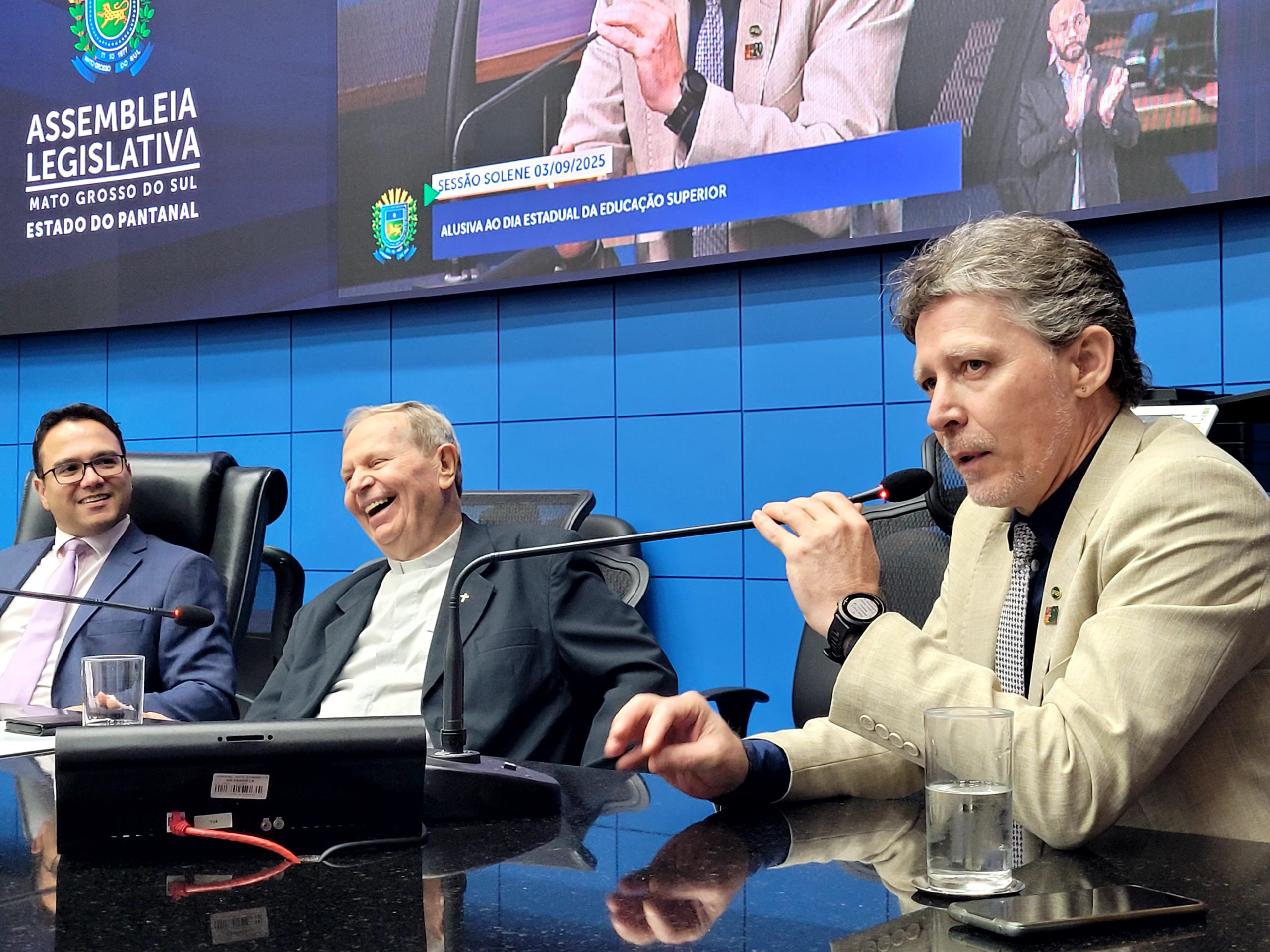 O vice-reitor Albert Schiaveto enfatizou a alegria de comemorar a data com homenagens a professores da UFMS e relembrar a trajetória de Pedro Pedrossian e Darcy Ribeiro. “A cada ano, na comemoração desse Dia Estadual da Educação Superior, nós temos a Comenda Pedro Pedrossian, que foi um visionário e instituiu as universidades no nosso Estado, e também Darcy Ribeiro, que são também homenagens a esses dois grandes educadores e impulsionadores da educação em Mato Grosso do Sul e no Brasil”, frisou.