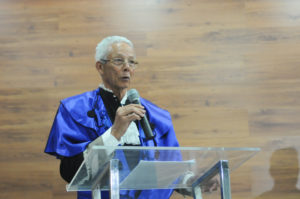 Acompanhado dos familiares, o professor cumpriu todos os ritos da solenidade com muita alegria e emoção.  Ao subir no Púlpito, após receber o título, discursou sobre sua trajetória, lembrando a todos que: sonhar e fazer ciência são duas coisas que movem o mundo. “Fazendo um retrospecto do caminho que tenho percorrido nas atividades de ensino, pesquisa e inovação, creio que tenho aprendido muitas lições ao longo da vida. A primeira está umbilicalmente ligada aos sonhos, sonhar em fazer o bem às pessoas é o vetor que me tem conduzido em todas as atividades em que me envolvi. Viver sem sonhar, é para mim, um pesadelo. E essa minha vontade me ensinou, noutra etapa da vida, as nações se desenvolvem social e economicamente se os Estados Nacionais estabelecem políticas públicas que promovam uma excelente ciência fundamental para o avanço do conhecimento humano”, completou