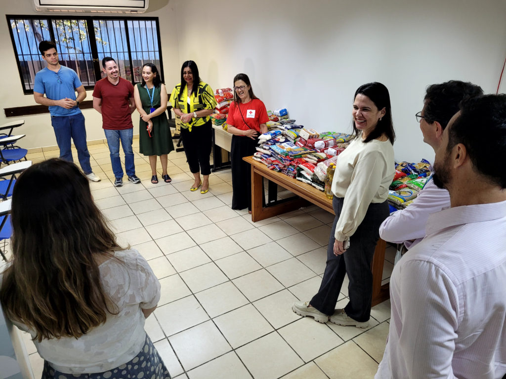 Graças ao empenho conjunto dos participantes da Volta UFMS 2025, que durante o ato de inscrição para a Caminhada UFMS contribuíram com doações de alimentos não perecíveis à Universidade, foi possível a arrecadação de 360kg de mantimentos a serem distribuídos em cestas básicas para o atendimento de mais de 300 famílias de Campo Grande em situação de vulnerabilidade social. Os donativos foram recebidos por representantes da Cruz Vermelha Brasileira em Mato Grosso do Sul, em evento ocorrido na tarde desta quarta-feira, 10, na Pró-Reitoria de Cidadania e Sustentabilidade (Procids).