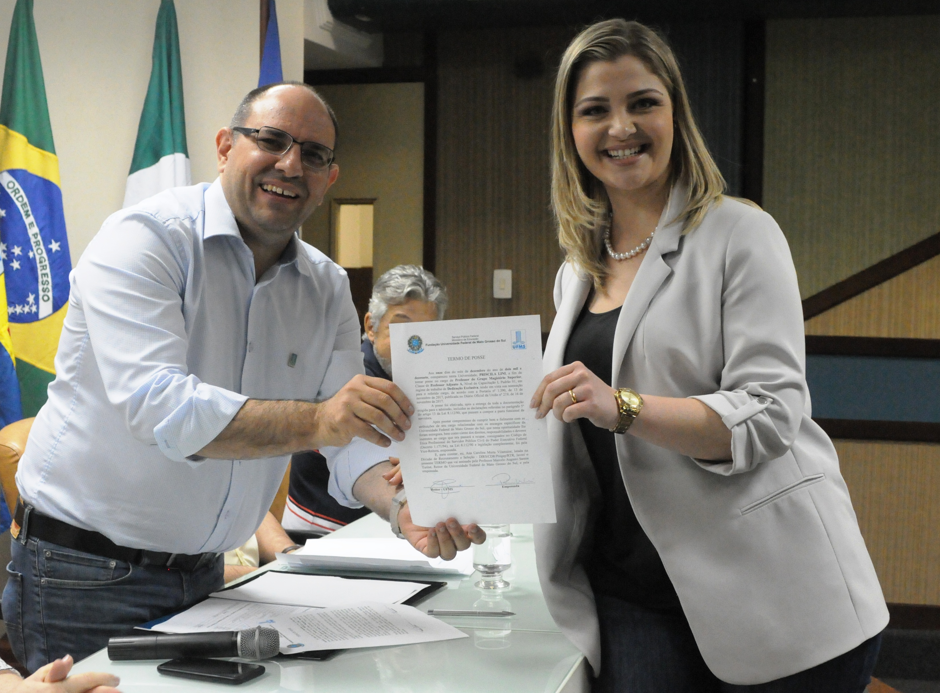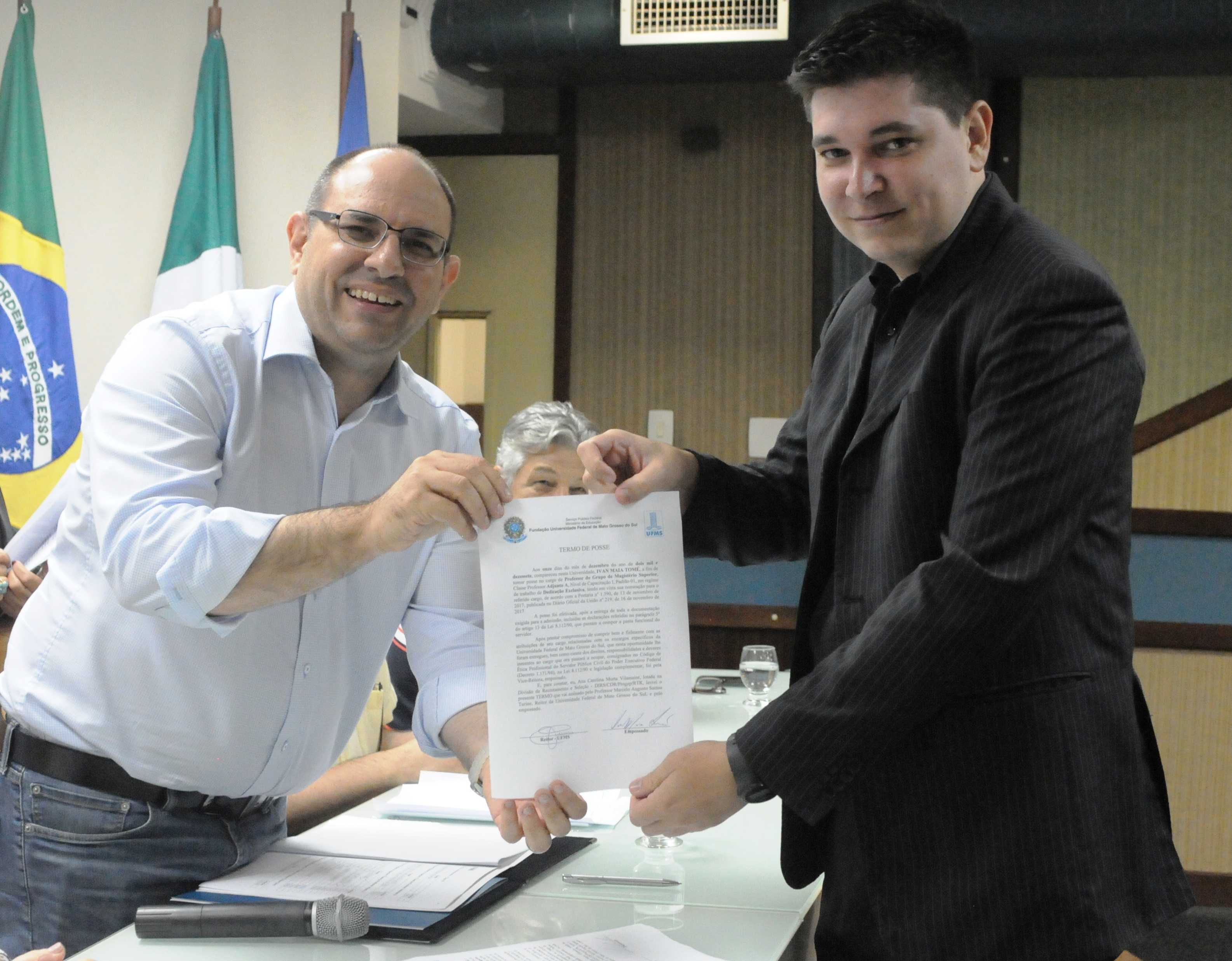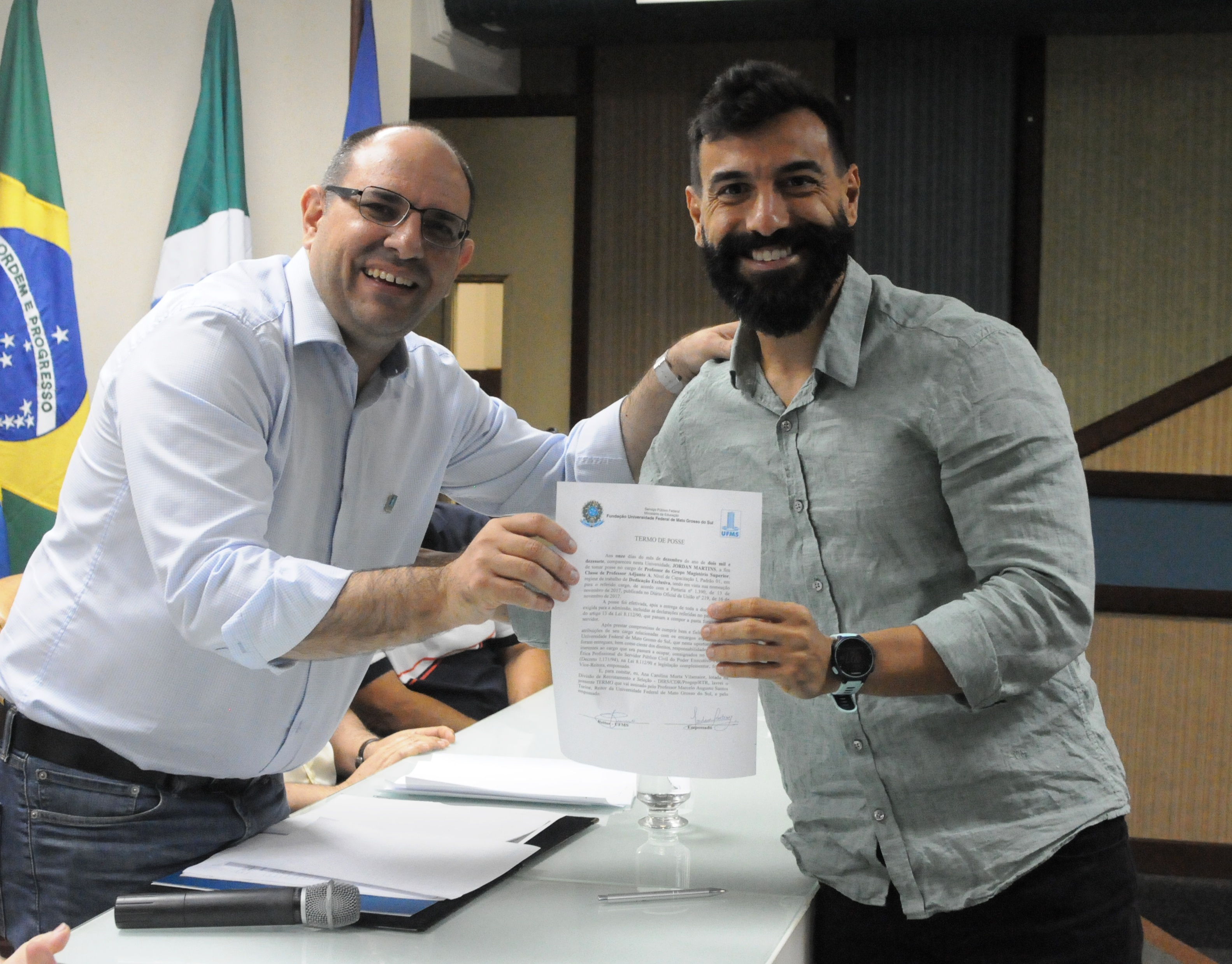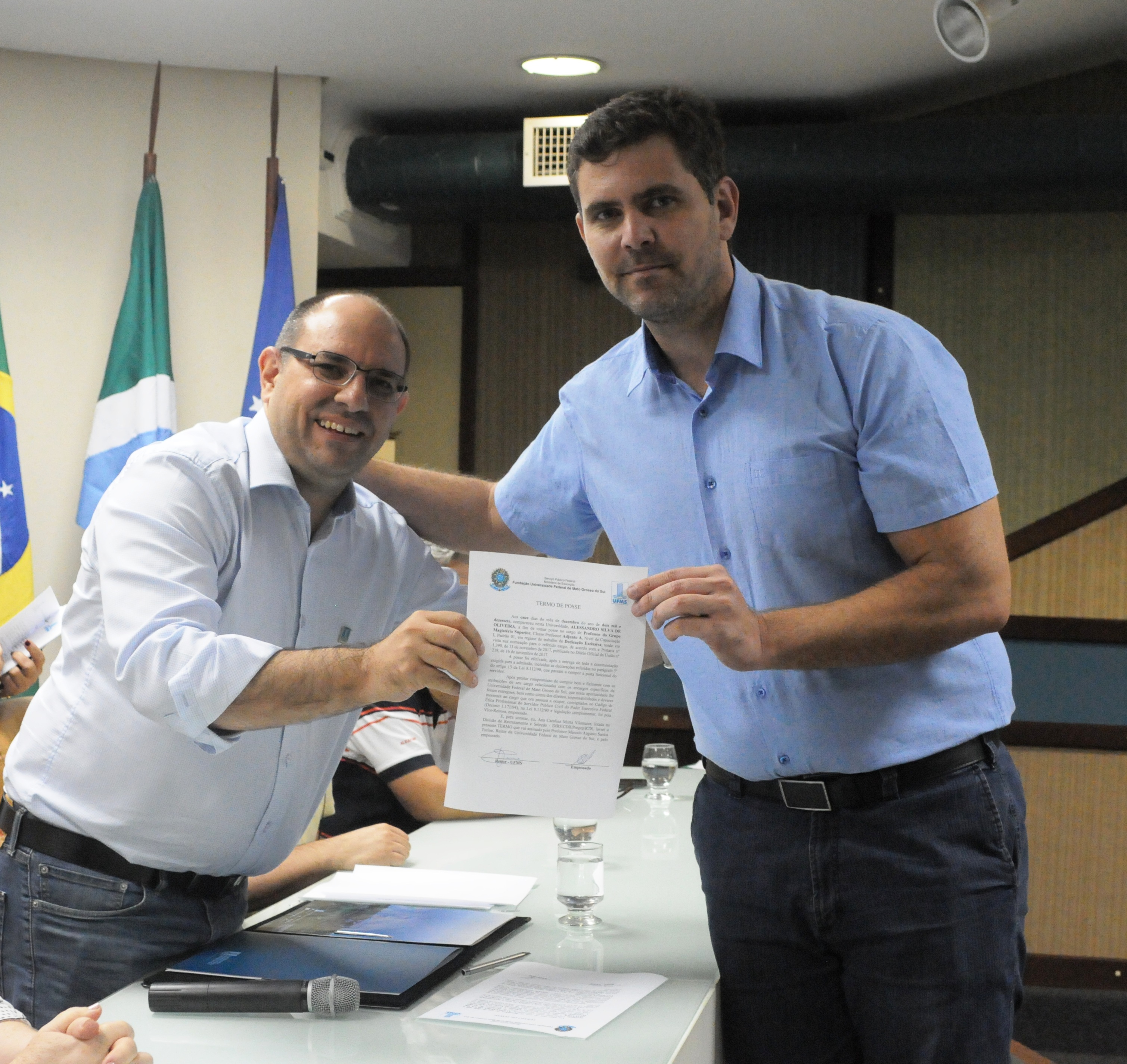 Na manhã de hoje (11) foram empossados na UFMS 15 docentes e um técnico-administrativo. Os novos servidores contemplarão unidades como os Câmpus de Chapadão do Sul (CPCS), Nova Andradina (CPNA) e Coxim (CPCX), o Instituto de Matemática (INMA), a Escola de Administração e Negócios (ESAN) e a Faculdade de Ciências Farmacêuticas, Alimentos e Nutrição (FACFAN).