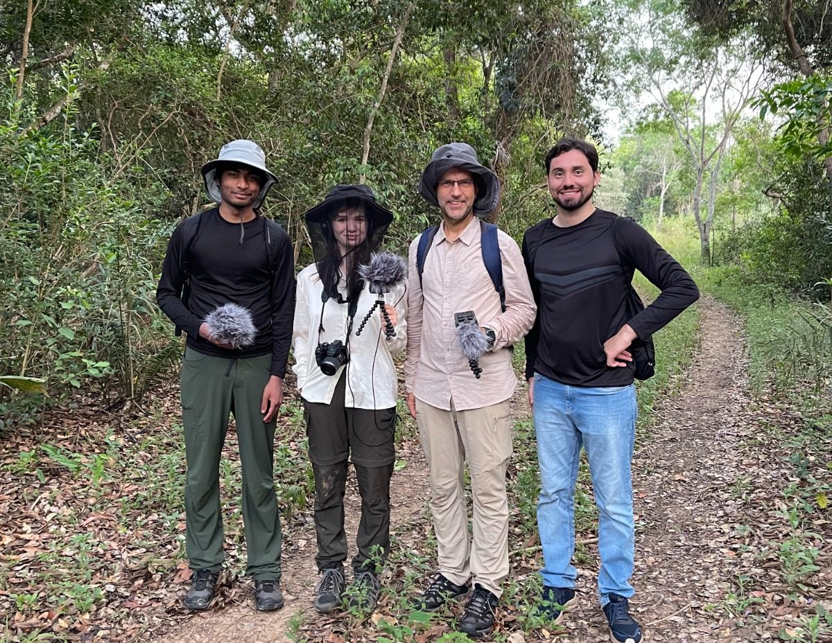 Professor William Teixeira e pesquisadores do PPGEL em coleta de sons no Pantanal
