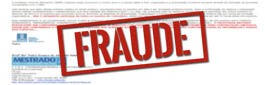 Mensagens fraudulentas de e-mail sobre uma possível contratação de pessoas para atuação em processos seletivos estão circulando na Internet com a utilização indevida de nomes de servidores da Universidade Federal de Mato Grosso do Sul (UFMS). A partir de contas falsas de e-mails, os usuários têm recebido a mensagem com o título “URGENTE”. No corpo do texto, utiliza-se o nome de servidores da UFMS e de outras instituições para apresentar “um amigo que é dirigente de uma Comissão em Coordenação de Processos Seletivos de algumas Universidades Particulares, Estaduais e Federais no Brasil”.
