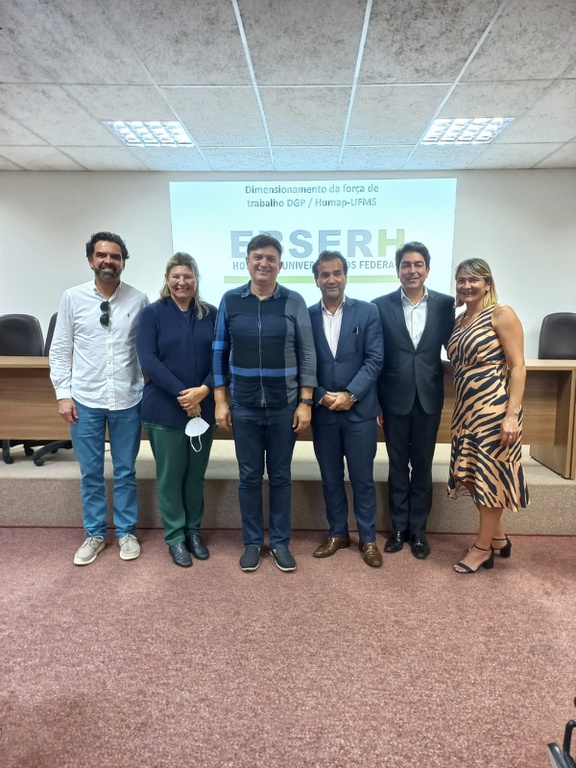 O Hospital Universitário Maria Aparecida Pedrossian (Humap-UFMS/Ebserh/MEC) recebeu, na última quinta-feira (02/06/2022), colaboradores da administração central da Rede Ebserh/MEC (Rodrigo Augusto Barbosa – Diretor de Gestão de Pessoas, Mauro Márcio Figueiredo de Oliveira – Coordenador de Planejamento de Pessoal e Ana Paula Santos de Lima – Chefe do Serviço de Dimensionamento e Monitoramento) para iniciar o projeto- piloto de construção de uma metodologia de dimensionamento da força de trabalho necessária para as áreas administrativas.