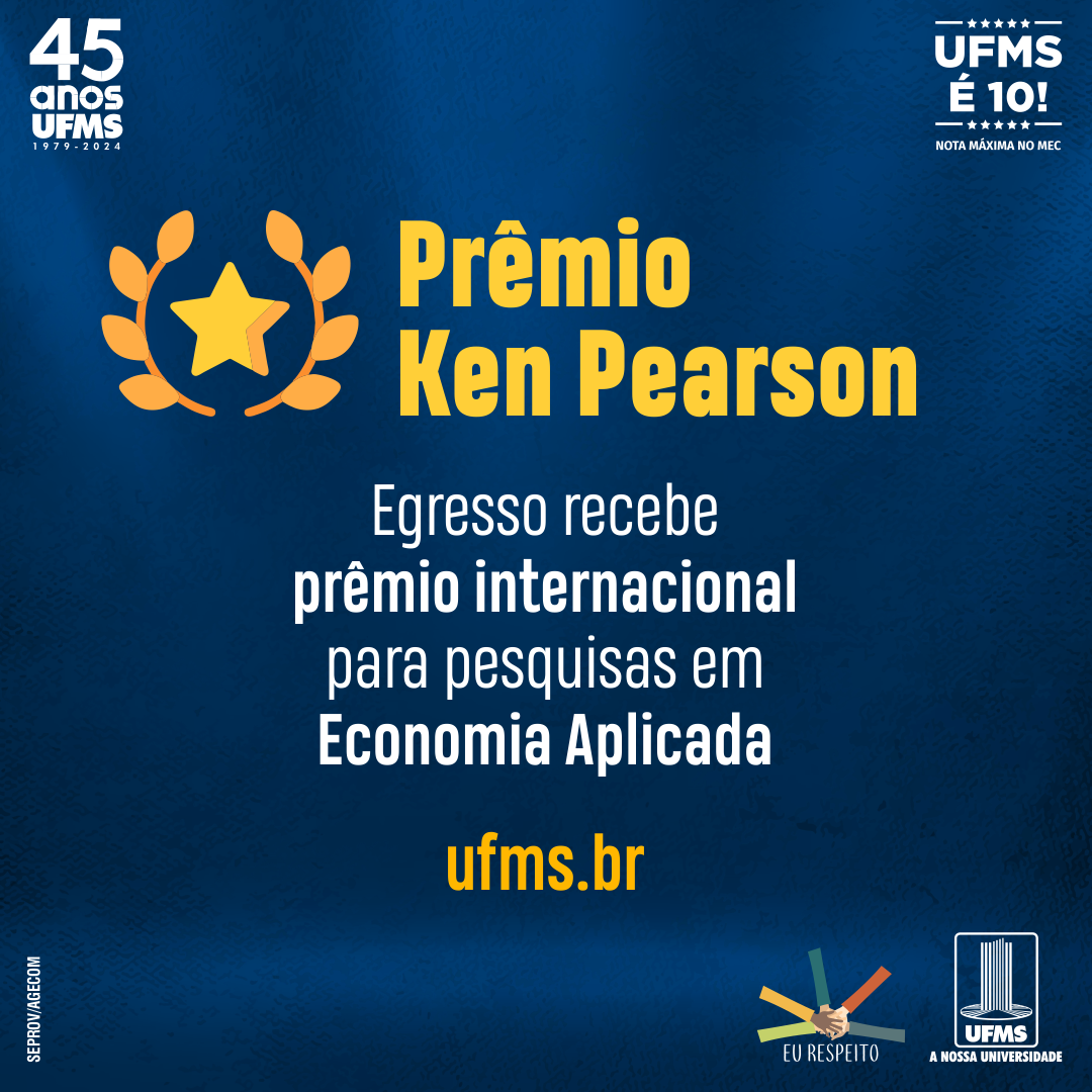 Um artigo fruto da tese de doutorado do economista Rayan Wolf o levou a conquistar o prêmio Ken Pearson, que será entregue na conferência Global Trade Analysis Project (Projeto de Análise de Comércio Global, na tradução livre) de 2024. O evento será realizado em junho deste ano na Universidade do Estado de Colorado, nos Estados Unidos. Rayan é egresso da UFMS, com graduação em Ciências Econômicas, mestrado em Administração na Universidade e doutorado na Universidade Federal de Viçosa (UFV). O pesquisador também foi premiado na mesma conferência em 2018, com artigo produzido a partir de sua dissertação de mestrado na UFMS.