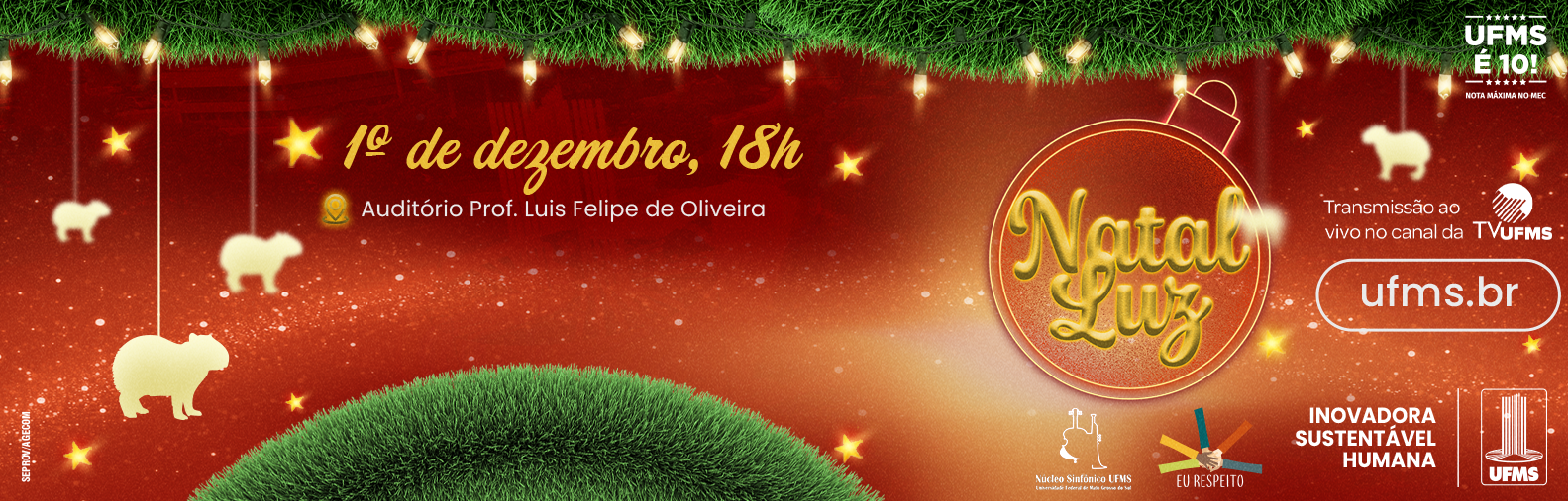 O clima natalino já se faz presente na UFMS e, para celebrar o ano que está se encerrando, a Universidade promove o Natal Luz, uma tradicional apresentação de fim de ano com repertório especial. O evento busca celebrar as conquistas de 2025, construídas com a parceria, respeito e dedicação de estudantes, professores, técnicos-administrativos, colaboradores terceirizados e parceiros institucionais, além de renovar as esperanças para 2026. A programação será realizada no dia 1º de dezembro, às 18h, no auditório Prof. Luís Felipe de Oliveira, localizado no setor 3 da Cidade Universitária, com transmissão ao vivo pelo canal da TV UFMS.