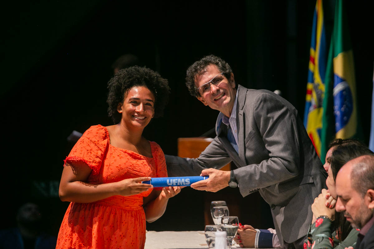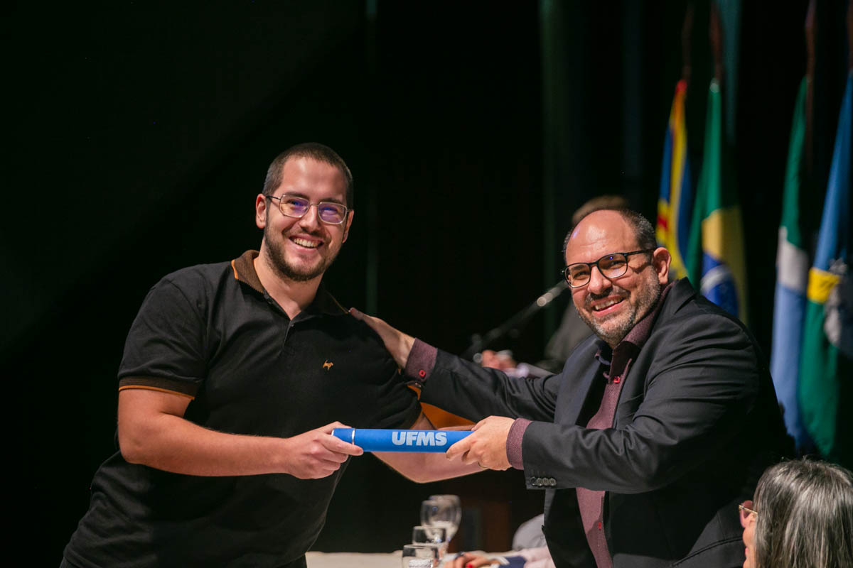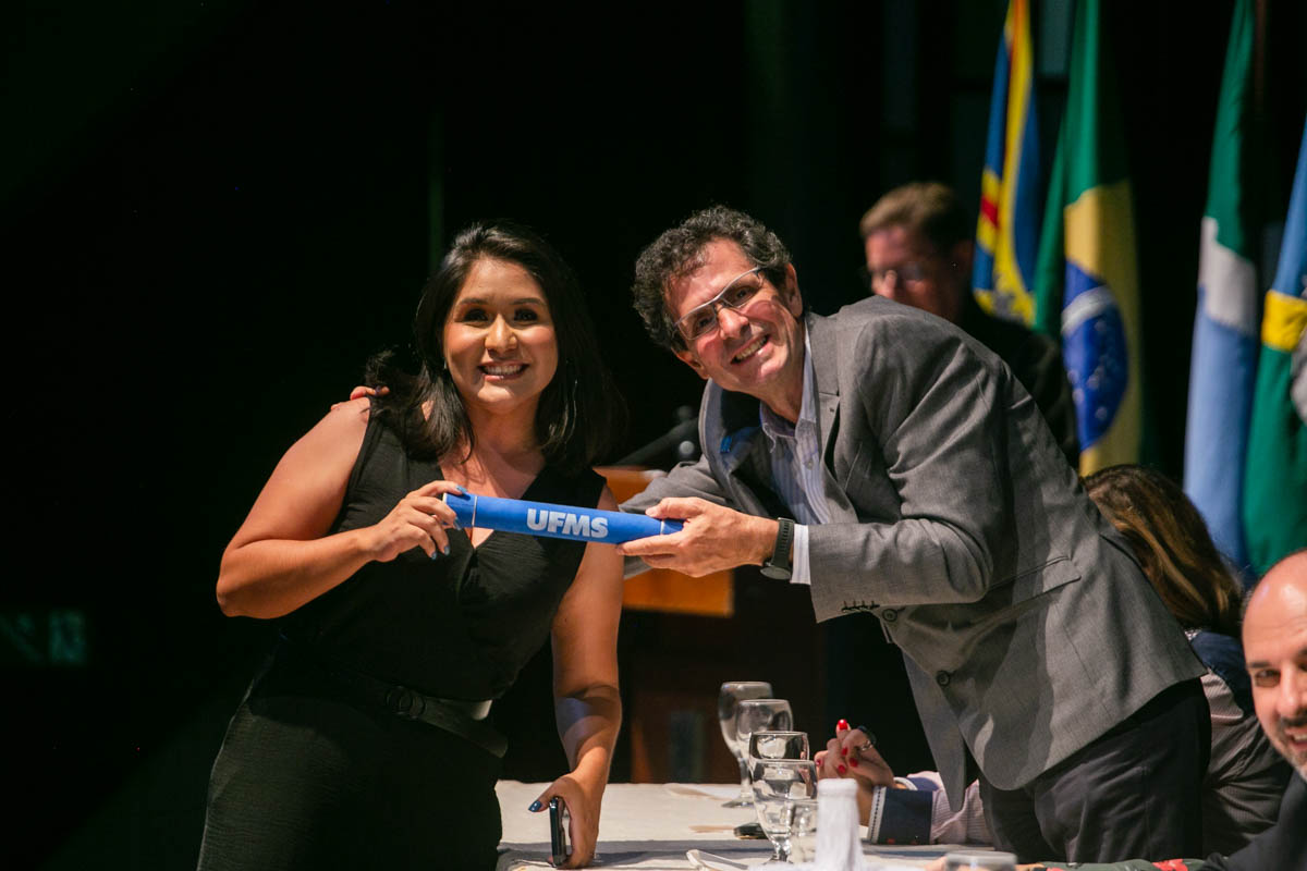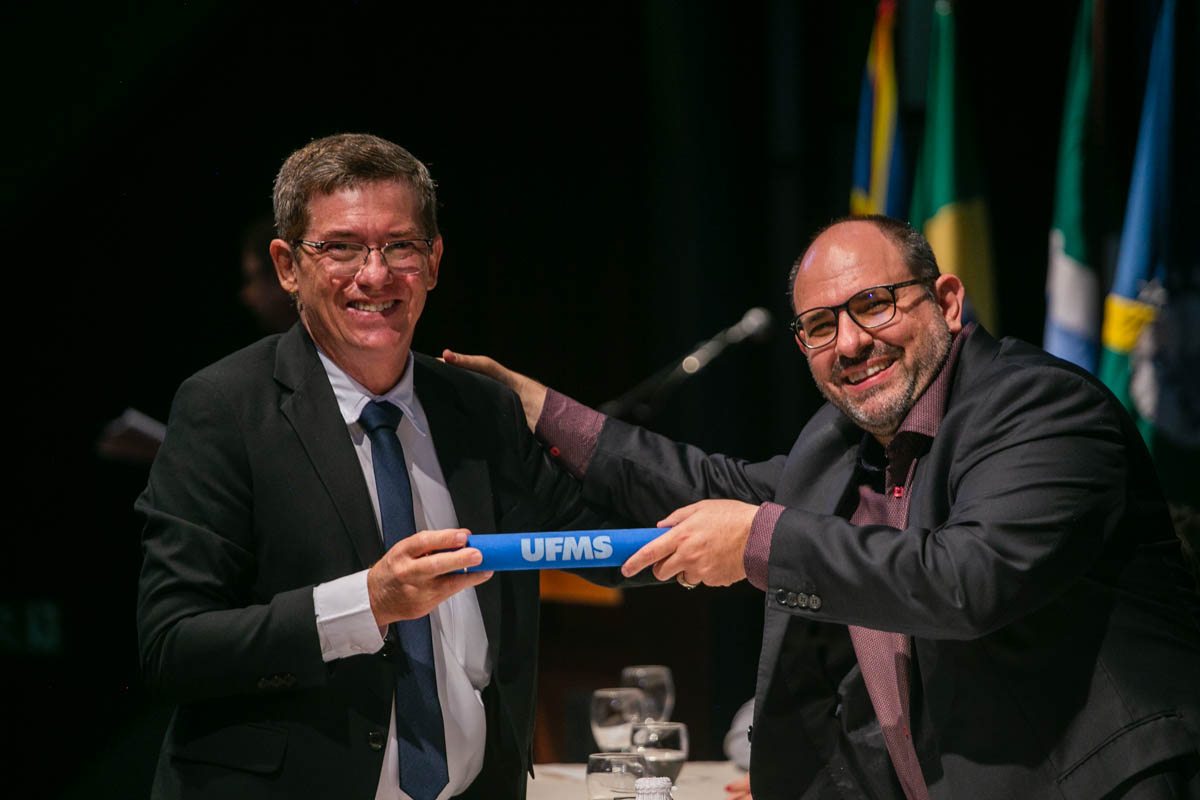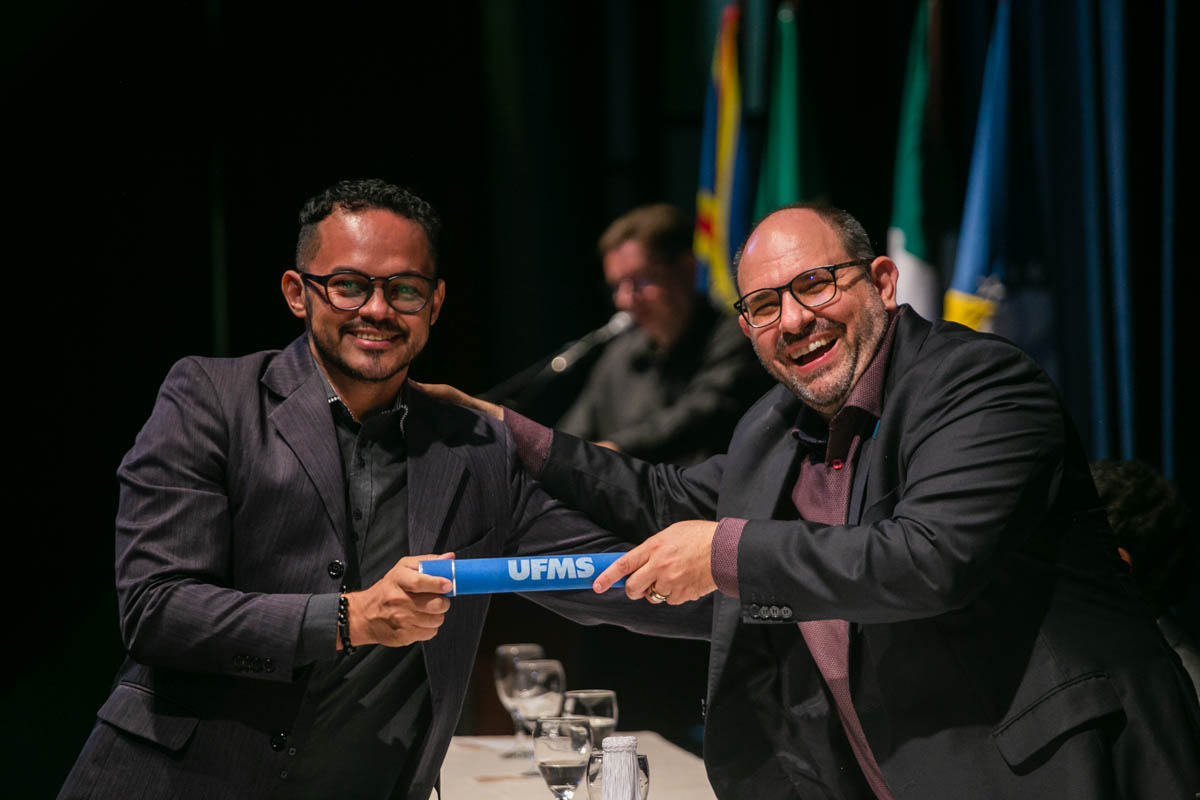 Uma cerimônia celebrou nesta sexta-feira, 17, a conclusão dos cursos de mestrado e doutorado dos programas de pós-graduação da UFMS. Estiveram presentes cem mestres e doutores dos mais de 600 que concluíram os cursos em 2022. A solenidade foi realizada no Teatro Glauce Rocha e teve transmissão ao vivo pelo canal da TV UFMS.