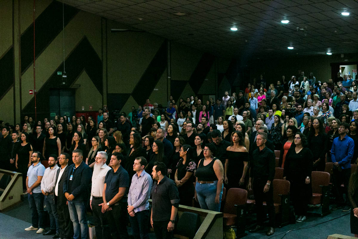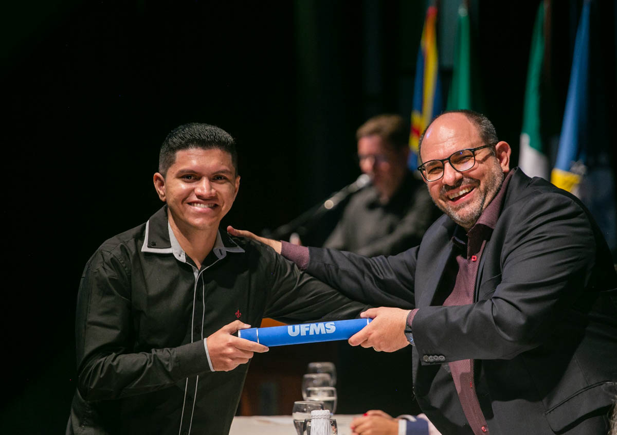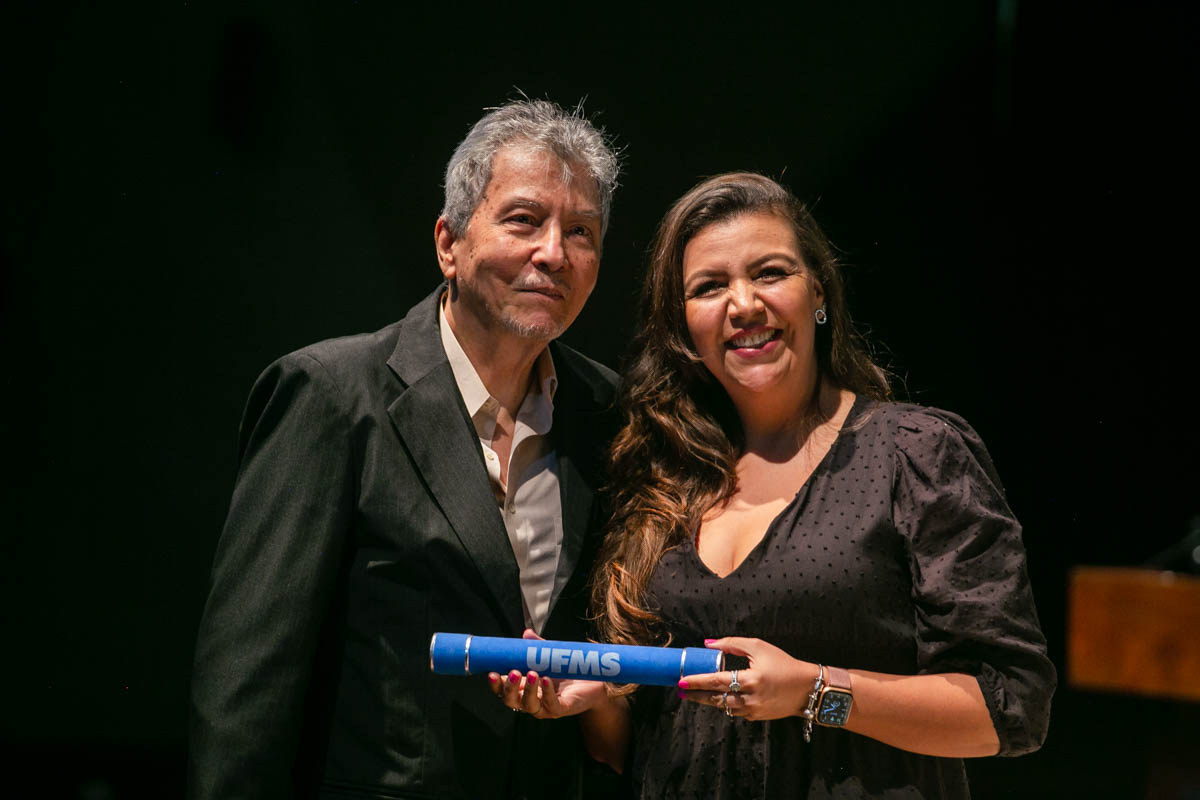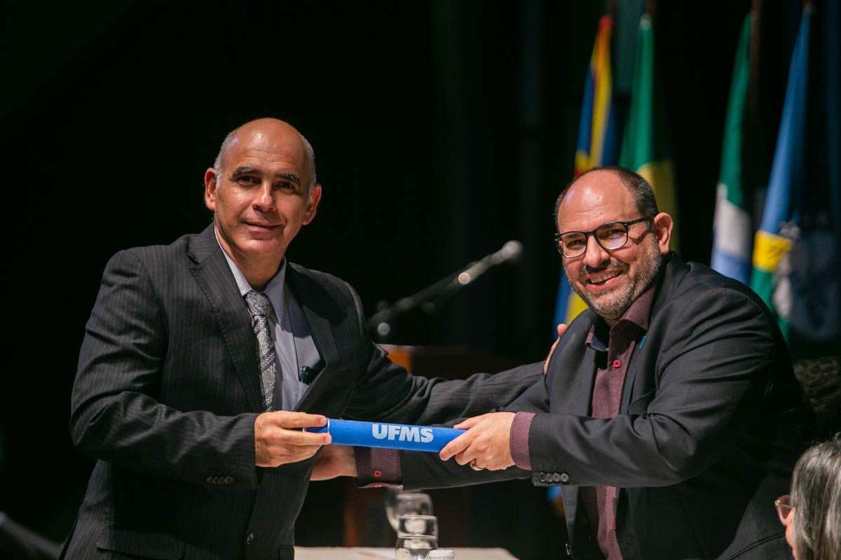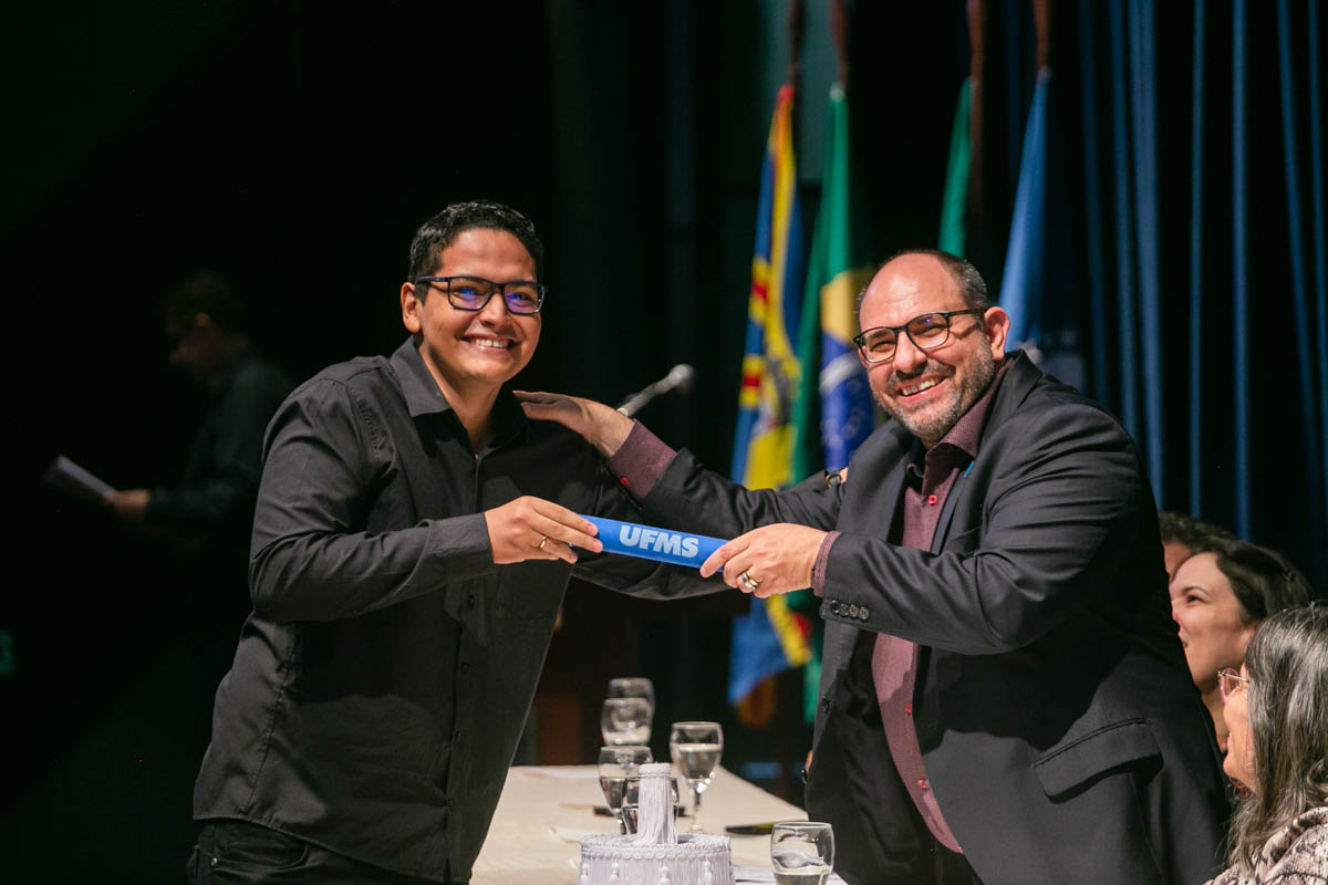 Uma cerimônia celebrou nesta sexta-feira, 17, a conclusão dos cursos de mestrado e doutorado dos programas de pós-graduação da UFMS. Estiveram presentes cem mestres e doutores dos mais de 600 que concluíram os cursos em 2022. A solenidade foi realizada no Teatro Glauce Rocha e teve transmissão ao vivo pelo canal da TV UFMS.