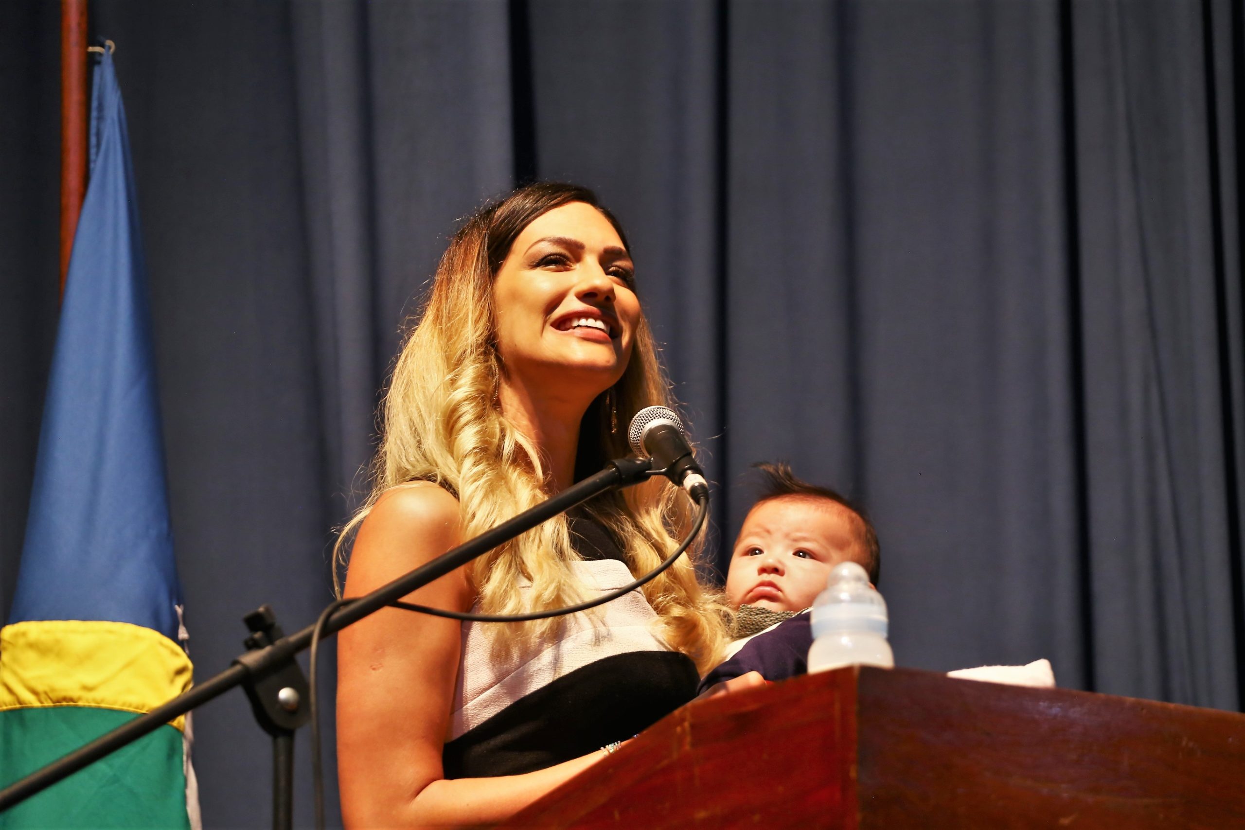 “Eu estou representando aqui não só uma pessoa do doutorado, eu represento aqui uma história. De uma brasileira que luta, como muitas outras brasileiras. Só a mulher sabe o que ela passa para chegar onde quer, em um mundo onde os salários são menores, onde ainda há preconceito e onde você chega com uma criança no braço, é julgada e não te querem [no mercado de trabalho]. Estou emocionada e muito feliz por esse momento!”, exclamou.