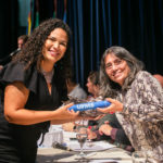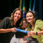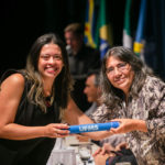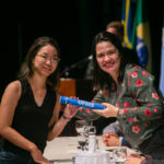 A vice-reitora Camila Ítavo parabenizou a todos e, neste Mês da Mulher, aproveitou para relembrar sua trajetória na ciência. Ela citou os avanços da Universidade para que as mulheres que são mães possam seguir em suas carreiras como pesquisadoras.