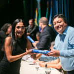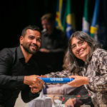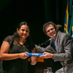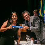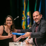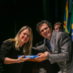 Já a doutoranda Camila Amato Montalbano, do Programa de Pós-graduação em Doenças Infecciosas e Parasitárias, realizou discurso como representante dos demais estudantes de doutorado. Com o filho Breno nos braços, ela deixou uma mensagem emocionante para todos os presentes e agradeceu pela oportunidade de se dedicar à ciência.